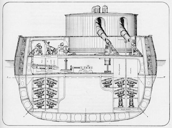 19世纪中叶铁甲舰刚刚问世时,各国海军装备的仍是前膛炮,这一装备与铁甲舰的设计理