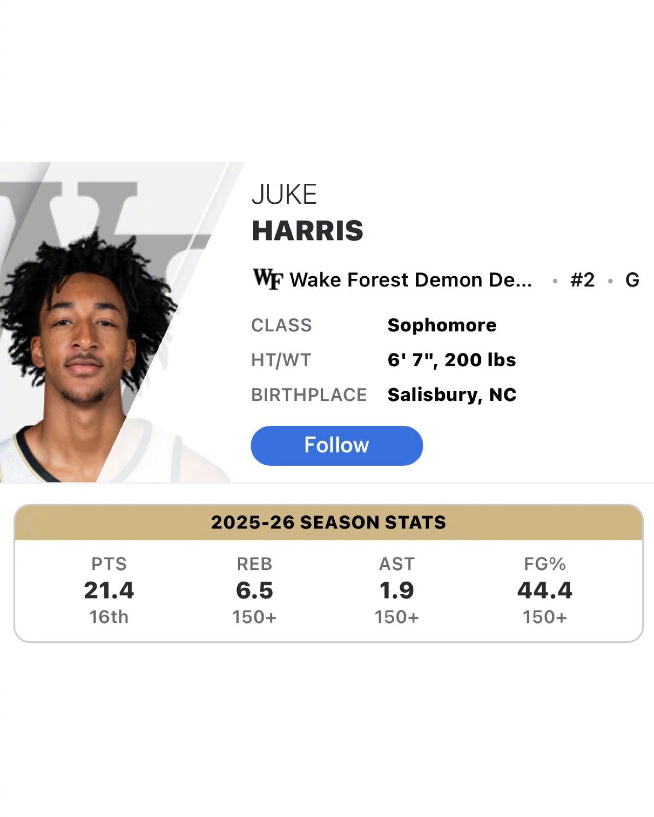 被预测可能有二轮或者首轮末行情的维克森林大学大二球星朱克-哈里斯宣布试水选秀,同时进入转学市场。大二赛季,哈里斯赛季场均21..4分6.5篮板1.9助攻。