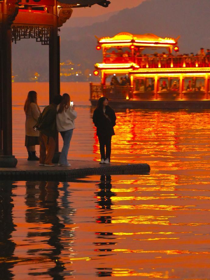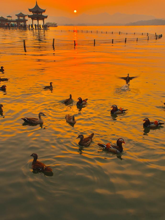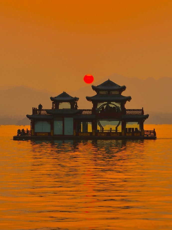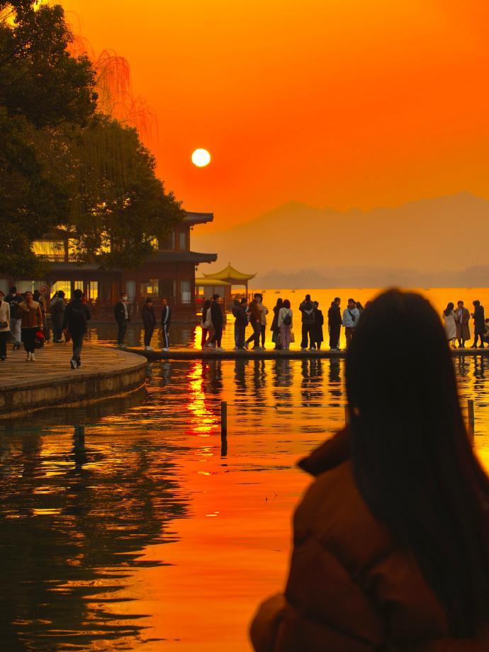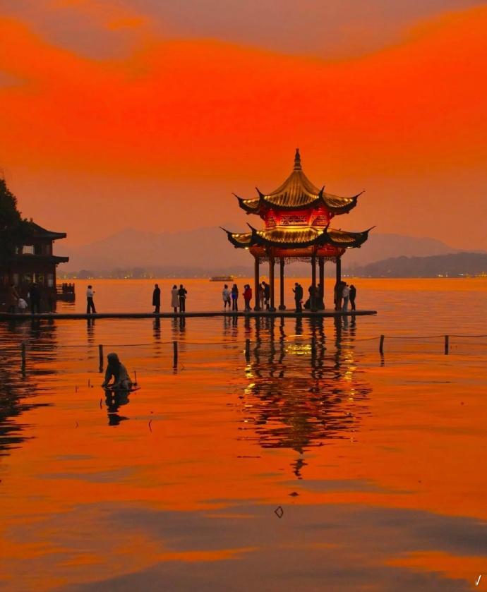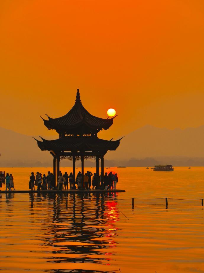 日落的西湖欲把西湖比西子,淡妆浓抹总相宜a股杭州西湖