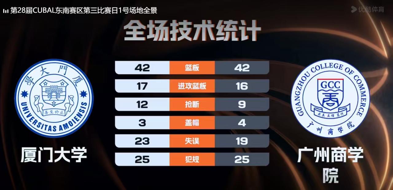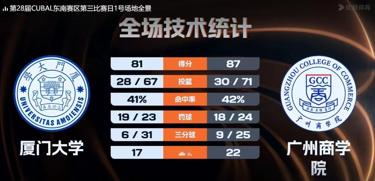 厦门大学对阵广州商学院惜败,总比分81:87。