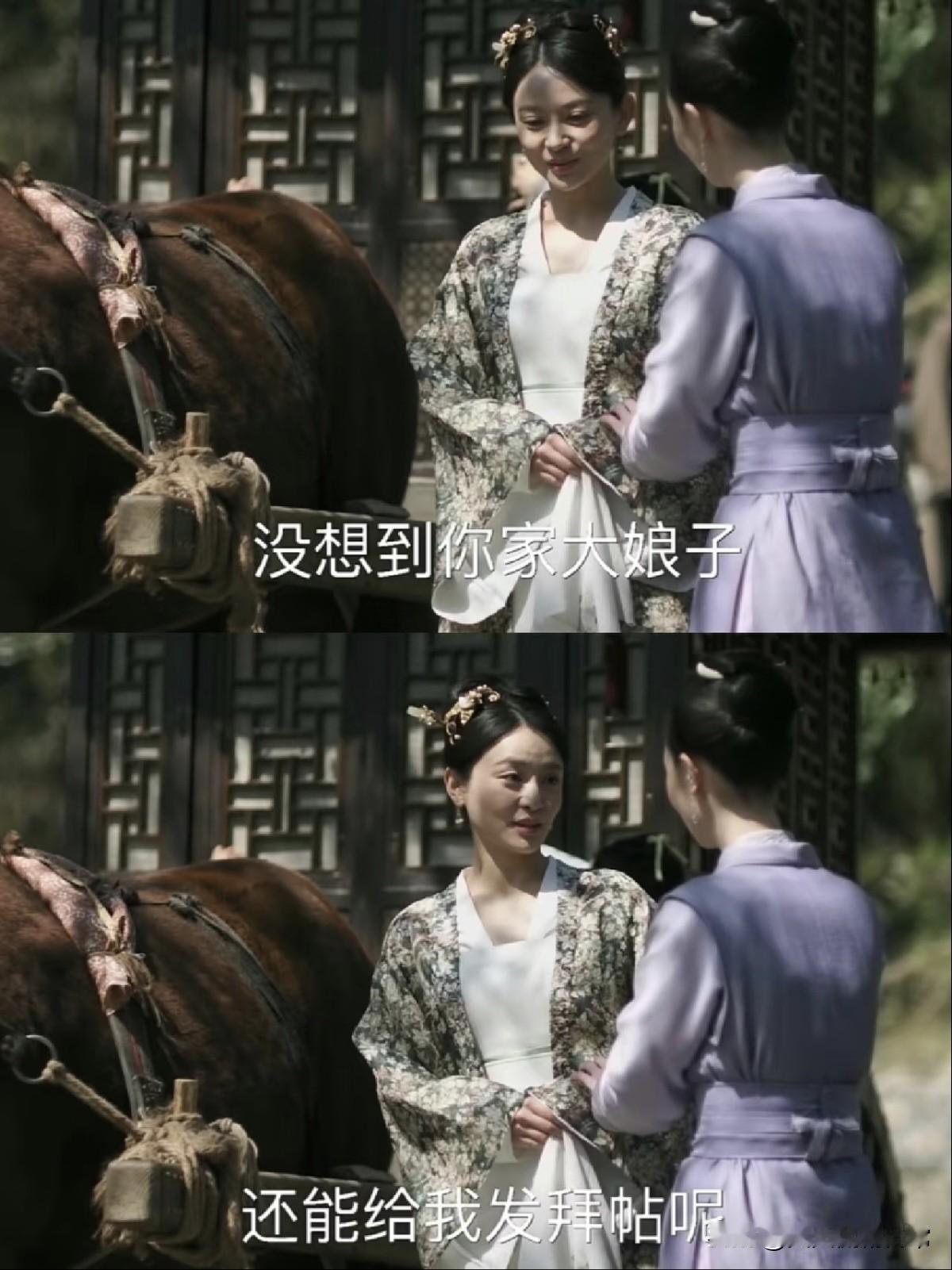 她在门口踌躇半天,想打道回府,被丫鬟翠微眼尖看见,故意说“大娘子特地派人来迎接”。