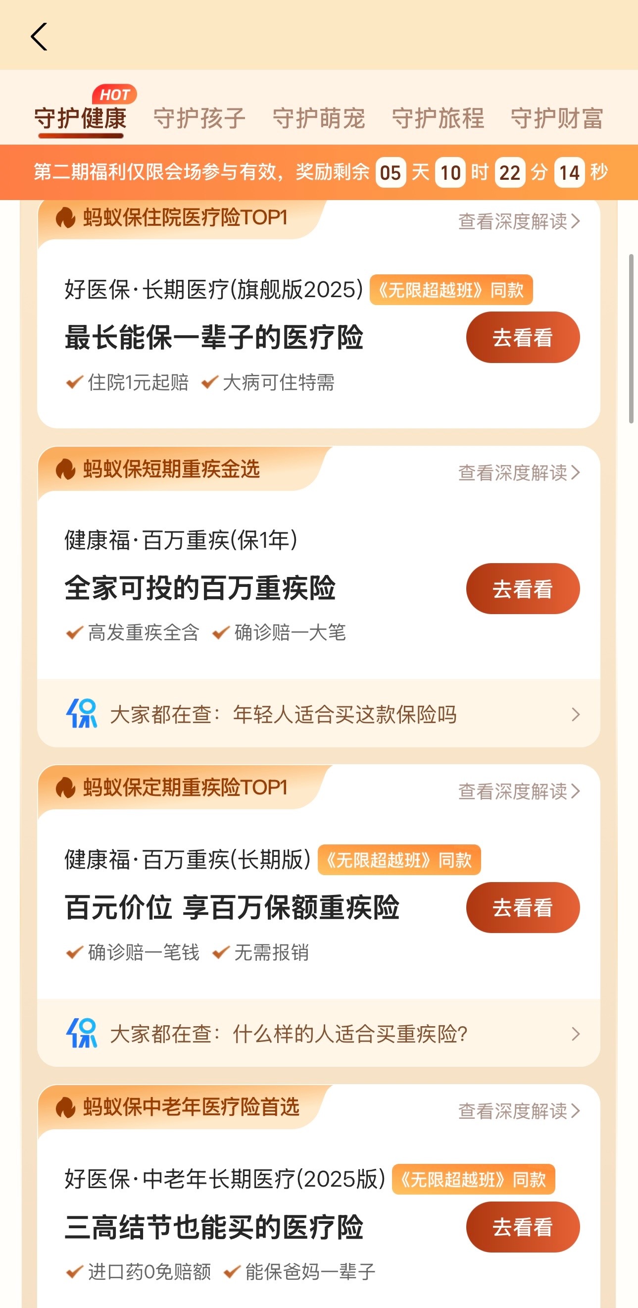 蚂蚁保这波可真会搞事情!不过话说回来,蚂蚁保上面的保险产品确实挺全的:医疗险、重疾险、意外险、车险、寿险、宠物险...日常能想到的风险,基本都能覆盖了。尤其像好医保这类健康险,有可以保证续保的长期医疗,还有专门给孩子设计的版本。平时在支付宝上就能买,操作简单透明,还有“金选”标准帮你筛出性价比高的产品。