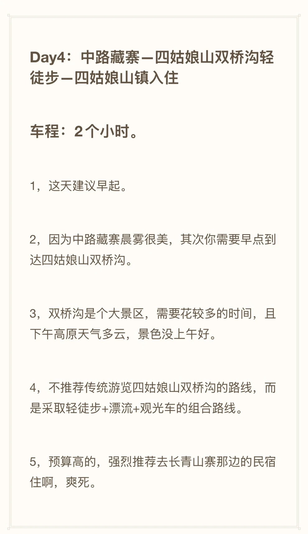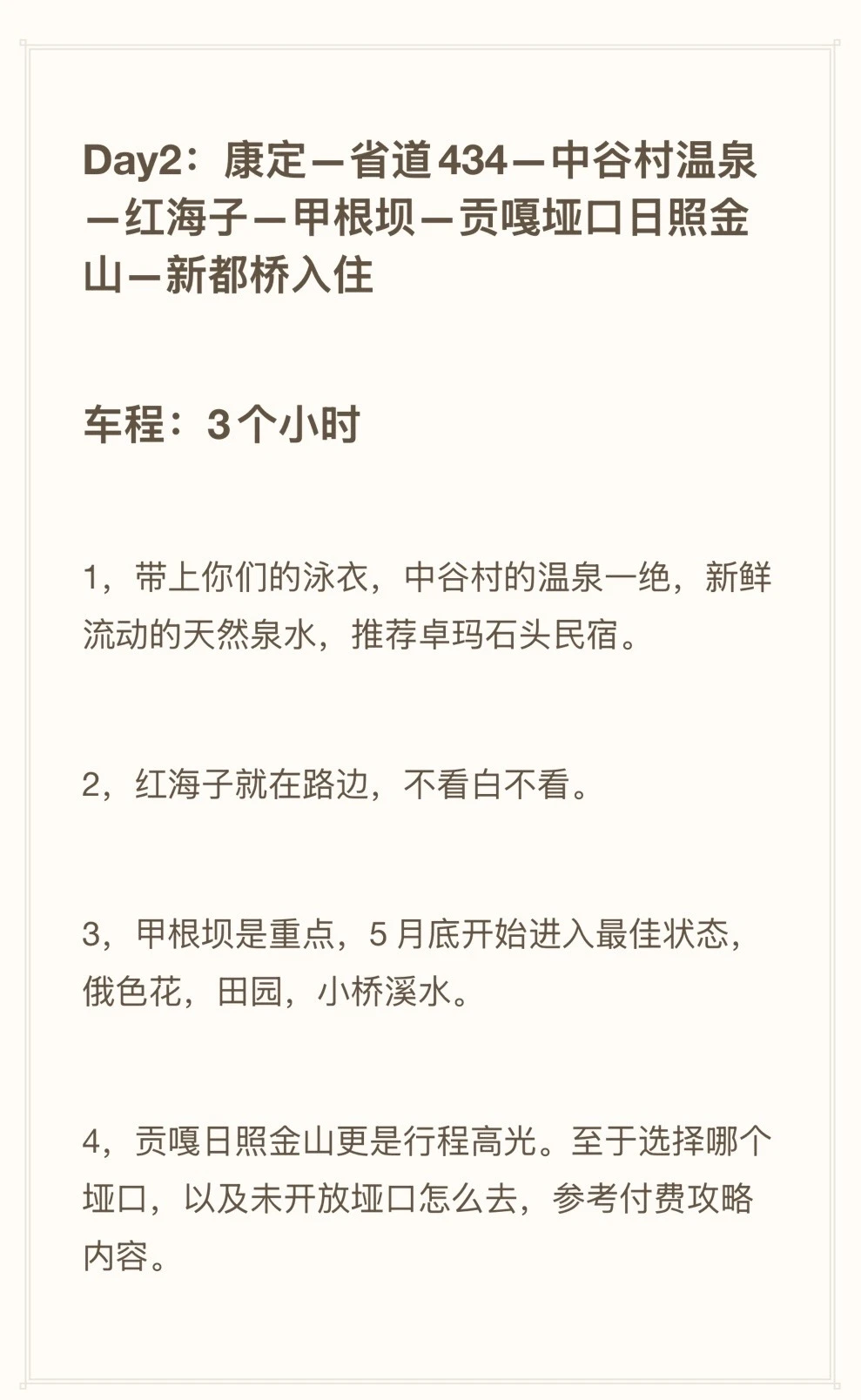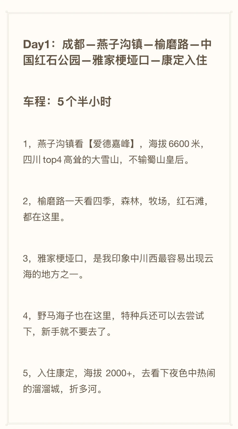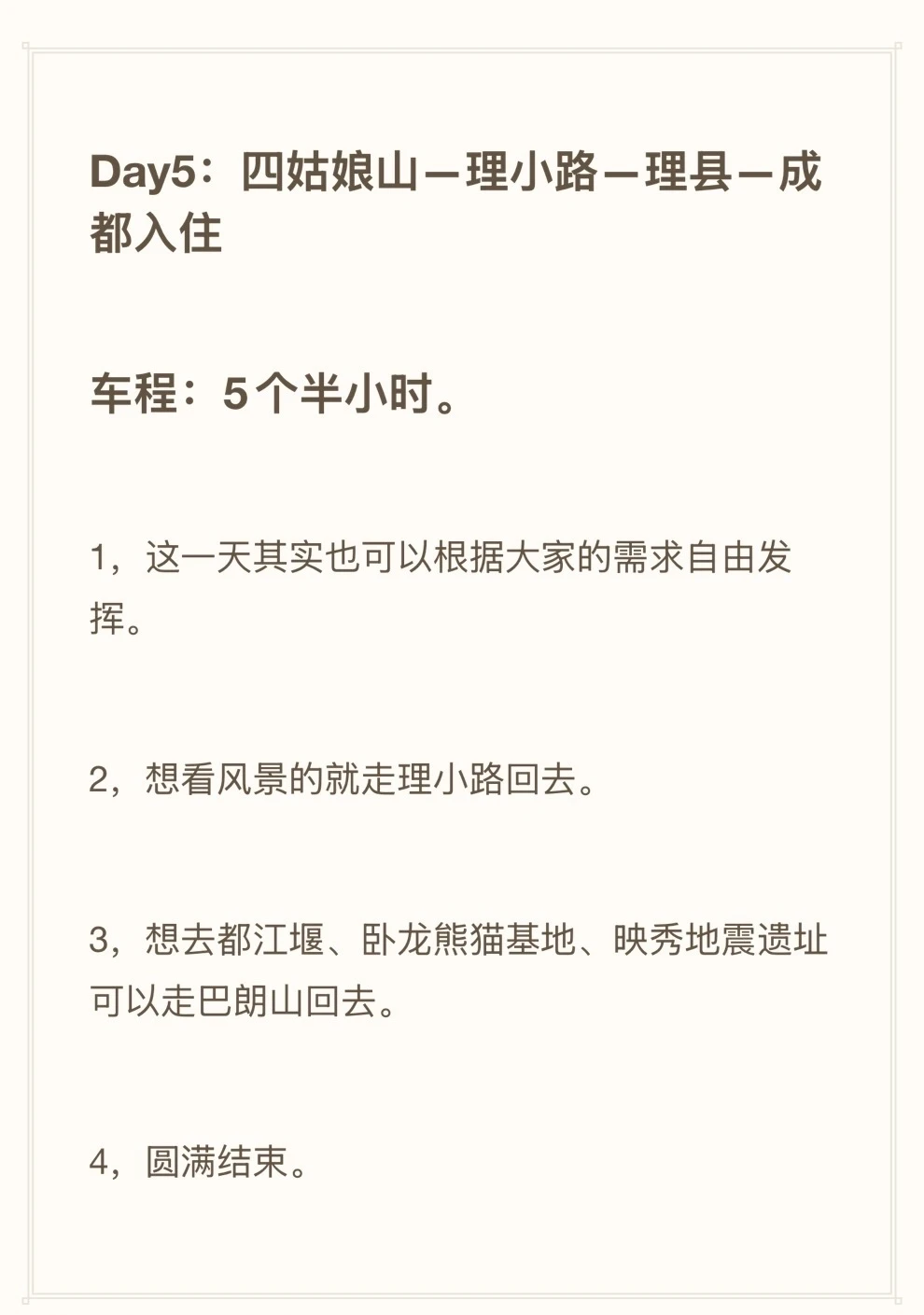 然后我根据我的理解,把以上问题都考量进去,写了一个现阶段我认为的,最完美的川西小环线了