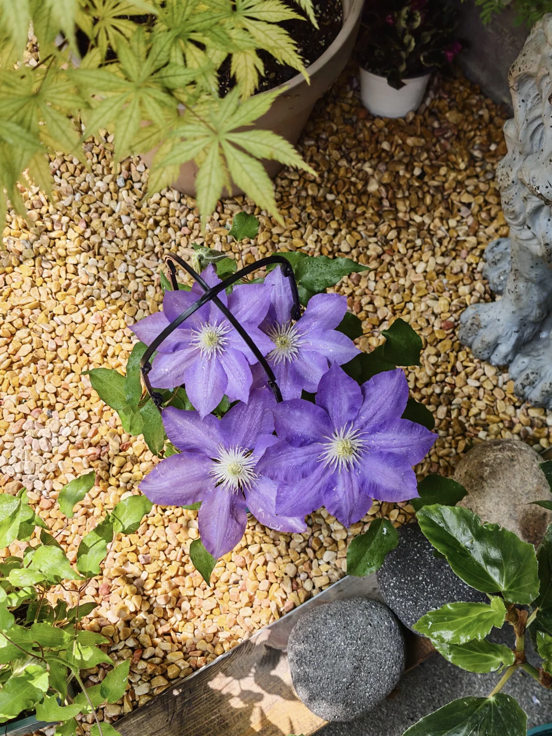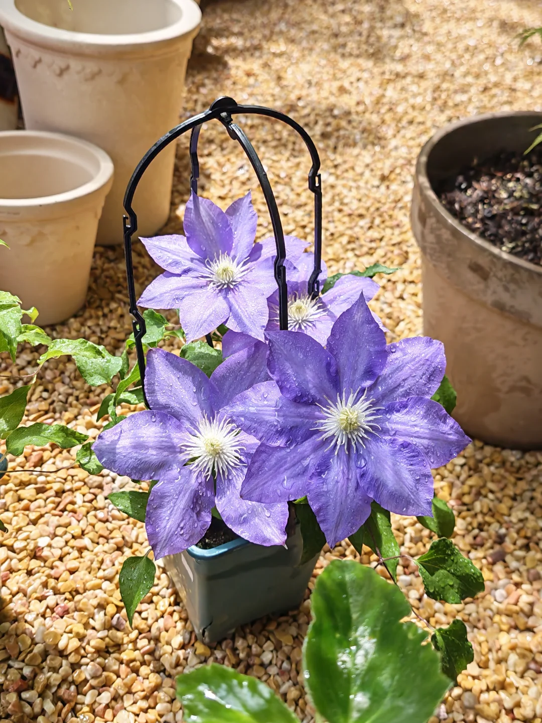 C、春天回暖每天新枝条的长势超过10厘米,晒太阳同时即使补充铁线莲专用营养液,新枝条及时引导成S型螺旋爬藤向上生长,避免枝条过快生长而株型乱。