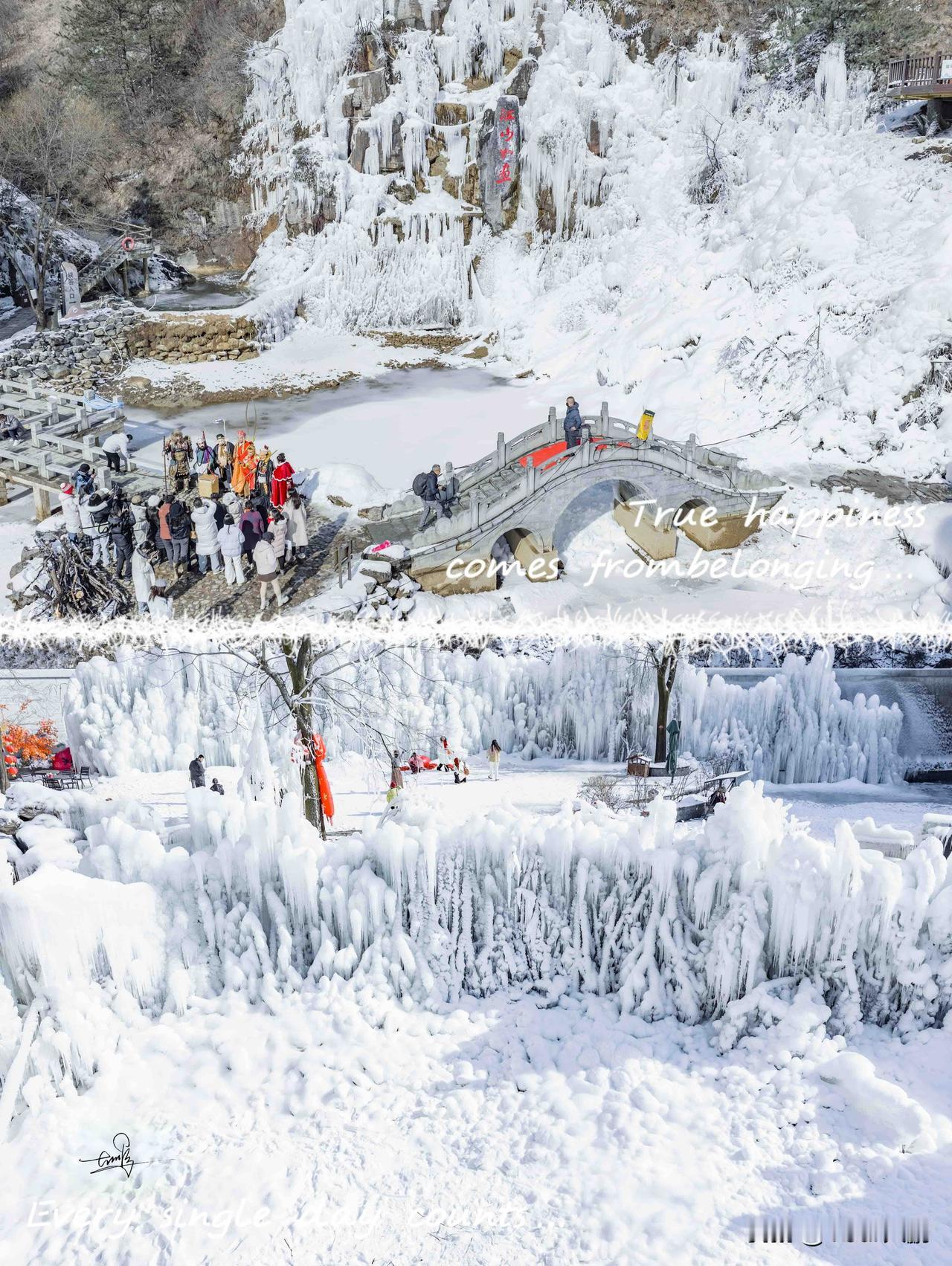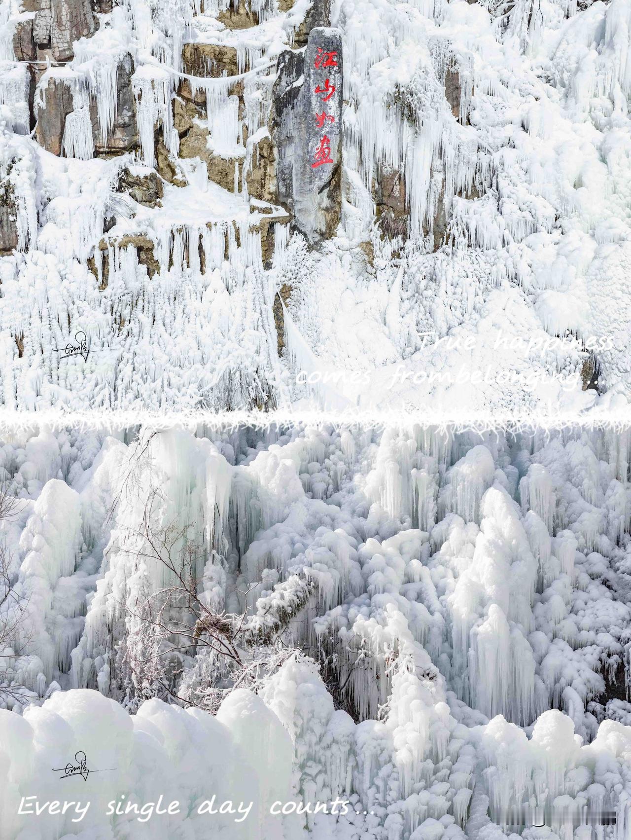 这里没有北方雪原的那种凛冽,取而代之的是漫山遍野的晶莹。山崖间的冰瀑垂悬着,就像银河突然凝结,每一根冰柱都像是大自然精心雕琢的艺术品;树枝上雾凇绽放,简直就是现实版的玉树琼花,美得让人窒息。