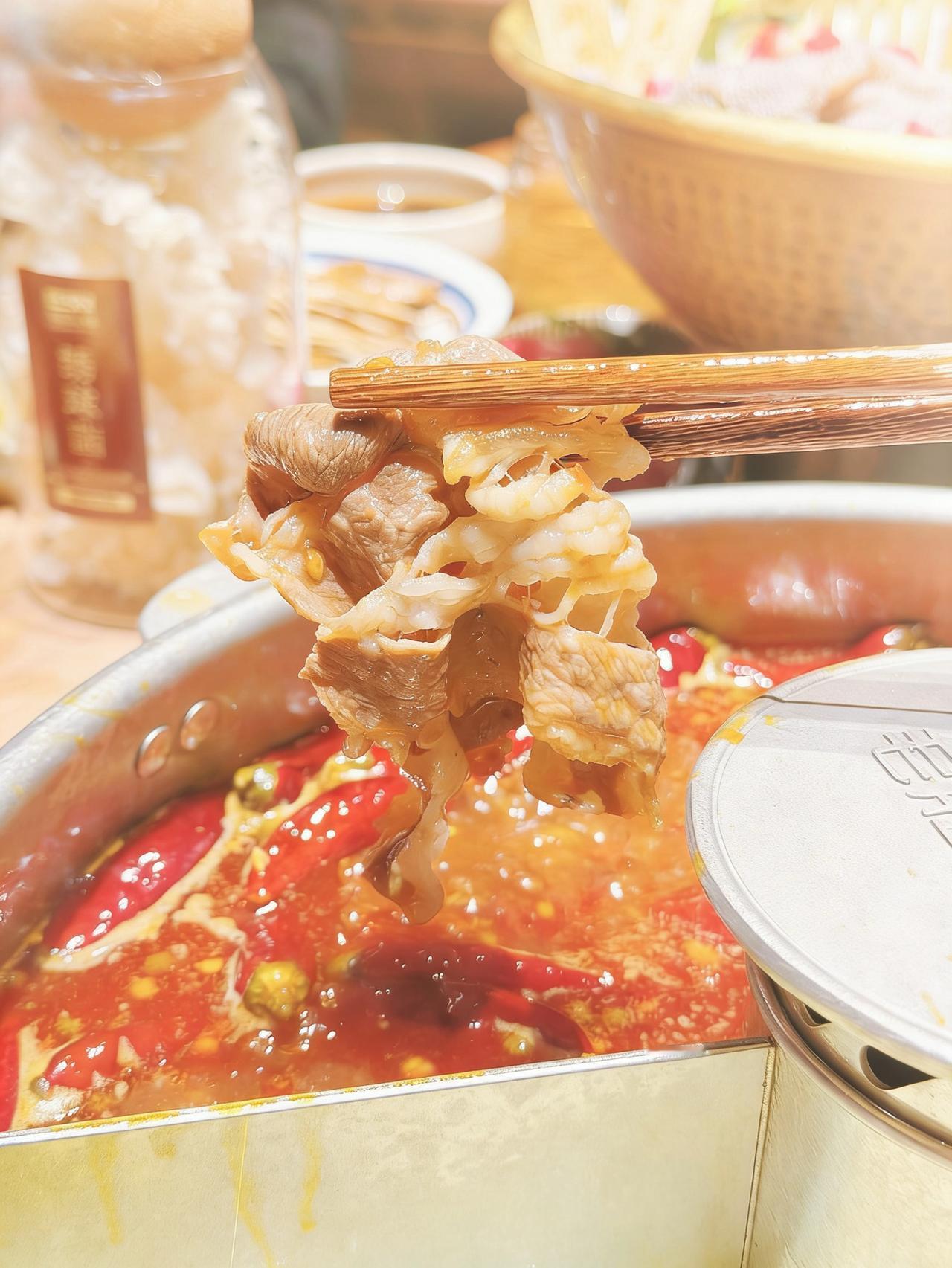 强烈推荐他家招牌毛肚,脆嫩弹牙,遵循“七上八下”原则,入口那叫一个爽脆,直接让我尖叫!野山菌汤每天现熬好几个小时,上桌先炫三碗,鲜得直钻骨子里。