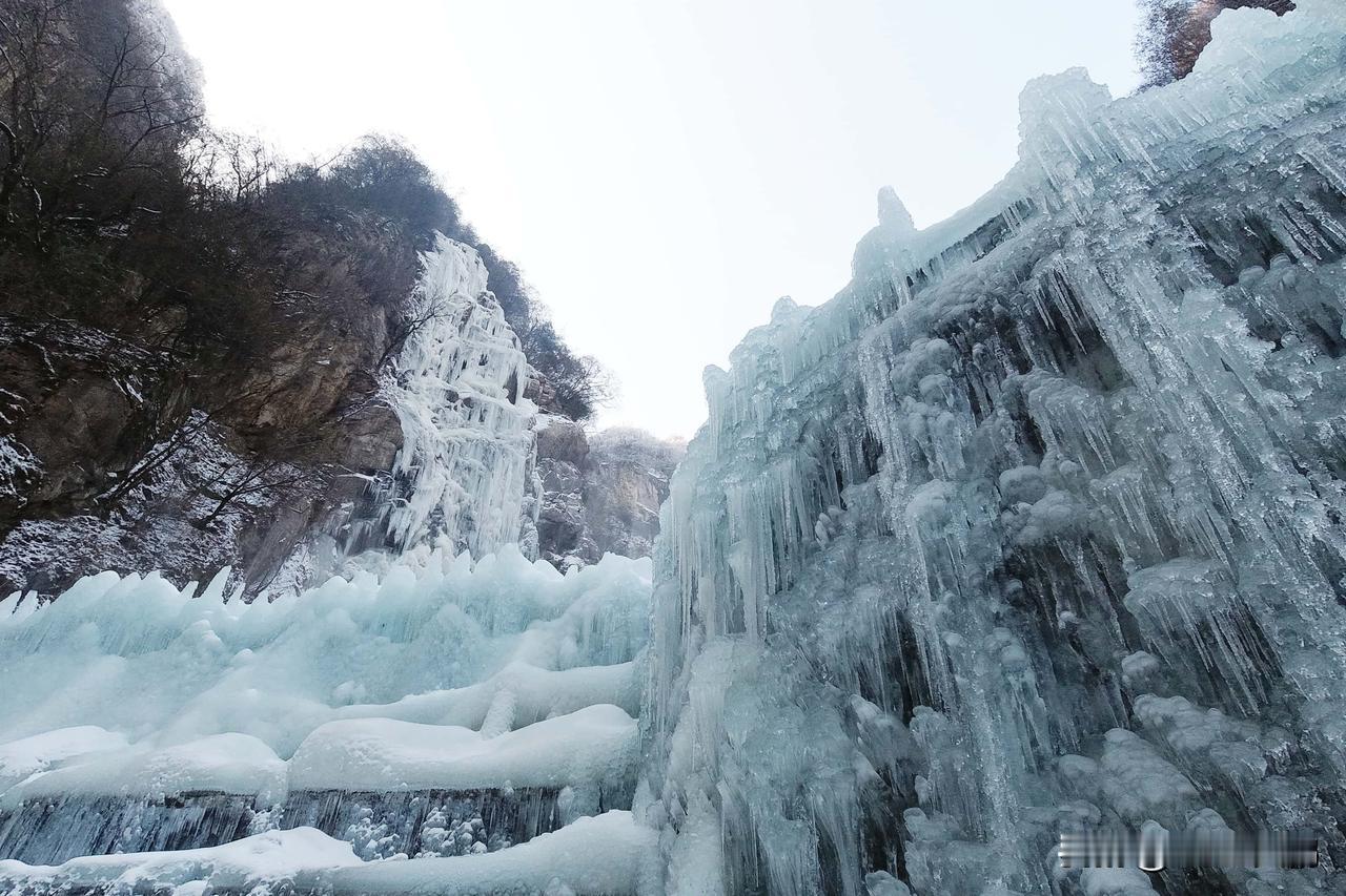 莲花峰瀑布在低温下凝结成高达百米的巨型冰瀑,12月到次年2月是最佳观赏期。层层冰柱垂挂,像水晶雕琢的帷幕,又似巨龙盘踞山间。在崖壁下观景台,雪后初晴时拍摄冰瀑全景,随手一拍都是大片