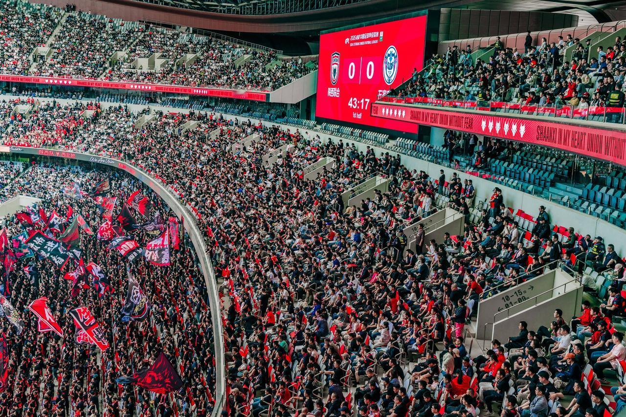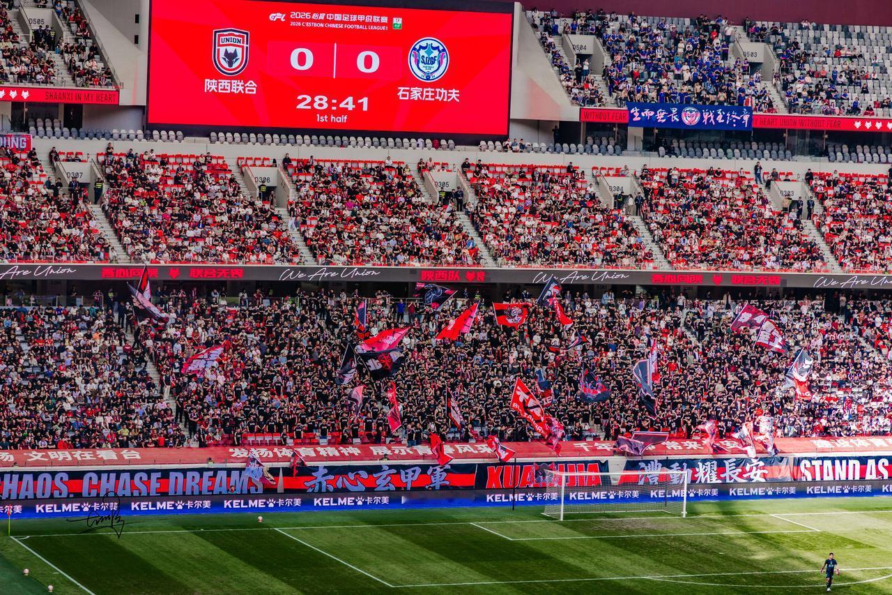 走进赛场,专业硬件和火热氛围完美融合。场馆大屏循环播放俱乐部主题视频和城市形象片,城市的魅力一下子就展现出来了。看台上,“为陕西而战”“12人”的巨幅TIFO震撼升起,“陕西队、西北狼”的口号响彻全场,金牌球市的盛景又回来啦👏。