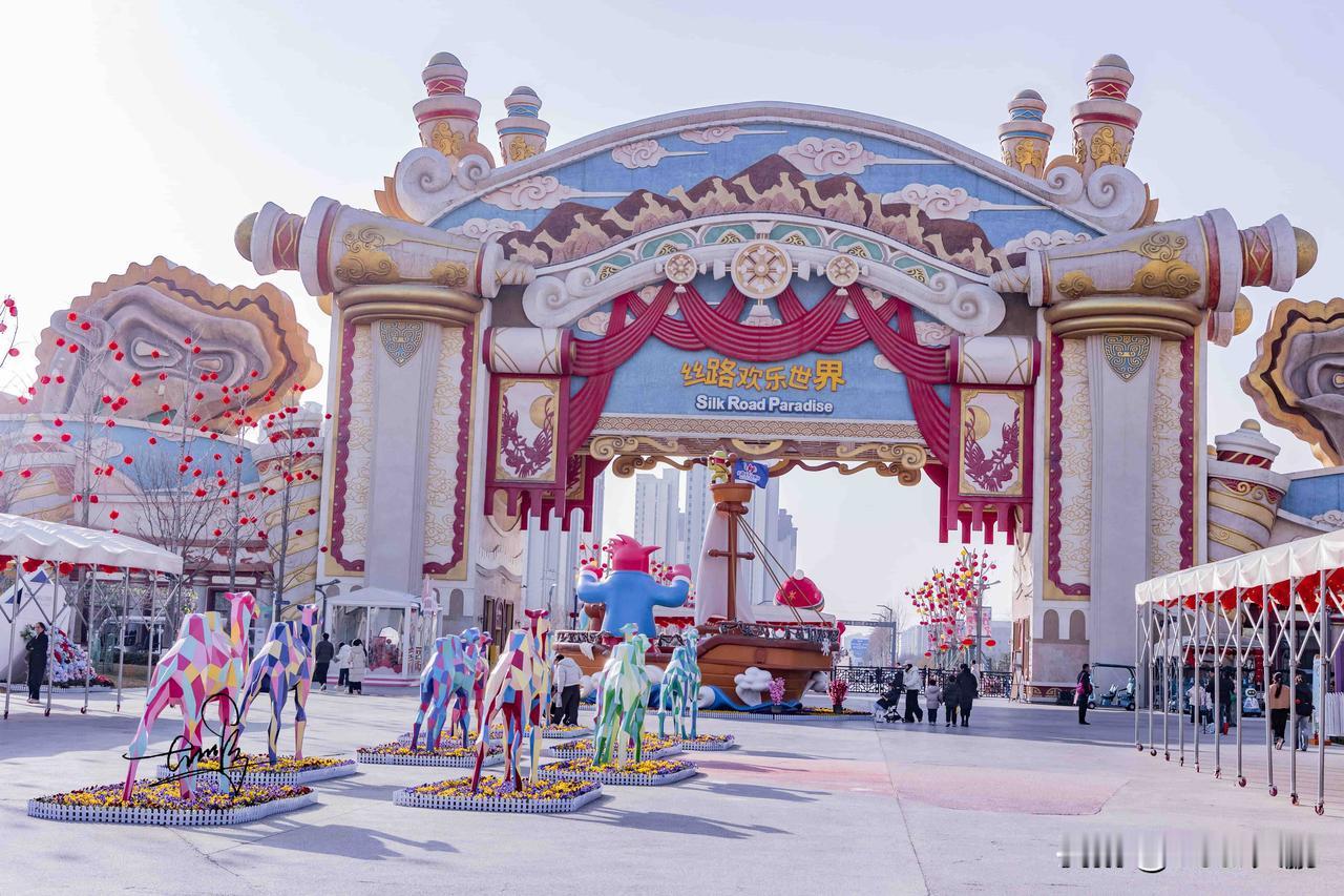 午后时分,一走进丝路欢乐世界,那红火喜庆的年节氛围就扑面而来。可爱的驼可波罗人偶俏皮登场,它就像一个欢乐使者,和往来的游客亲切互动、合影留念,现场欢声笑语不断,仿佛一片温暖的海洋,瞬间把节日的快乐拉满!