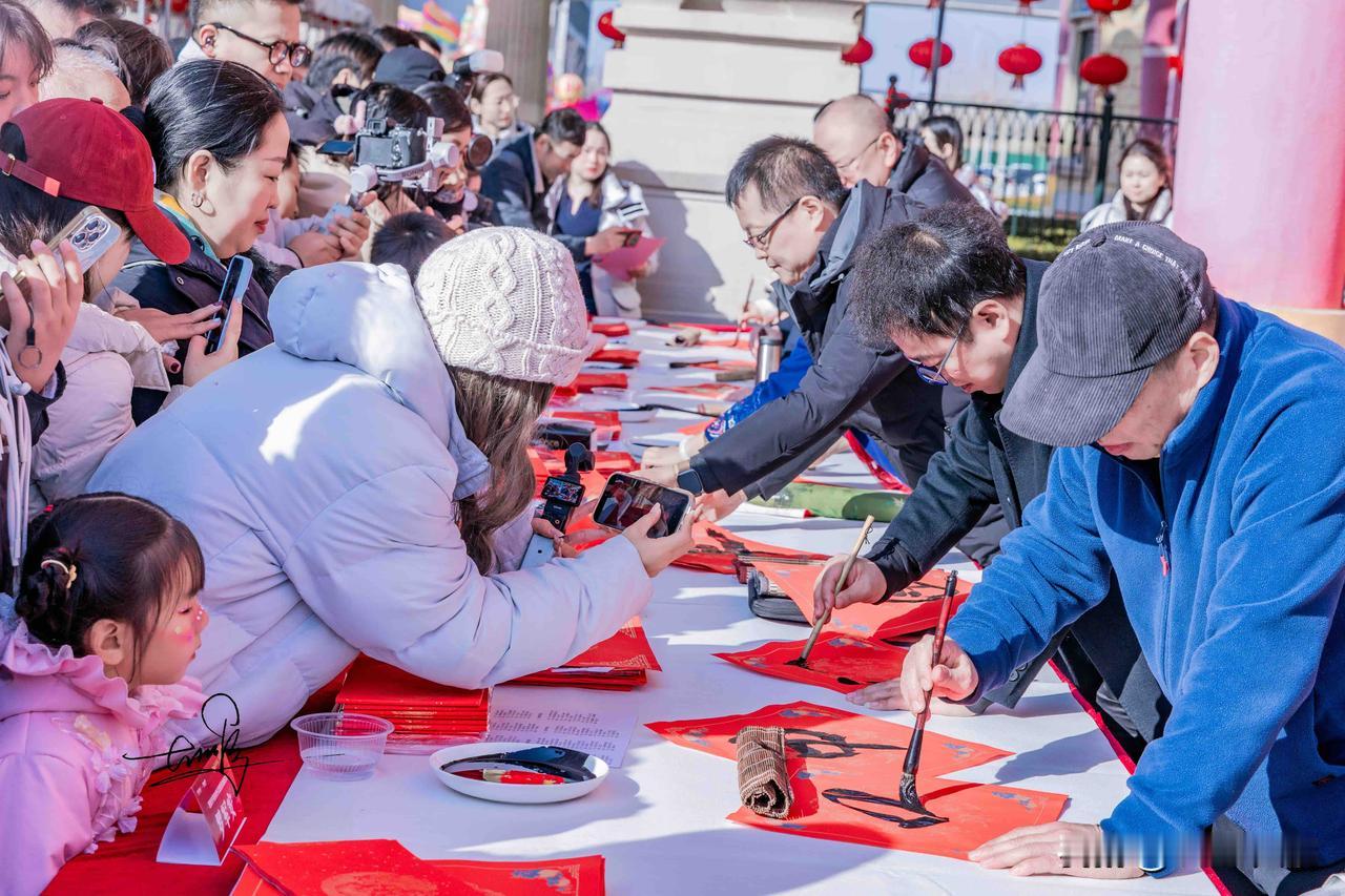 在这里,传统雅韵与乐园欢悦完美交织。墨香幽幽,欢笑朗朗,共同绘就了一幅流动的、洋溢着温情与年味的新春画卷。