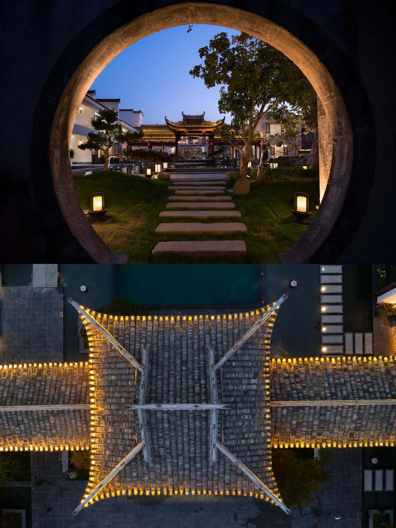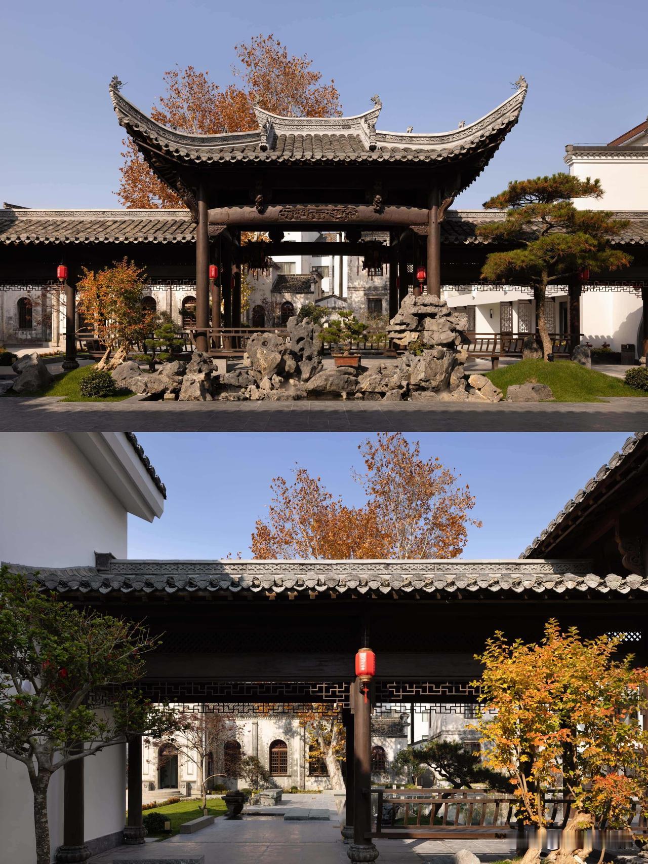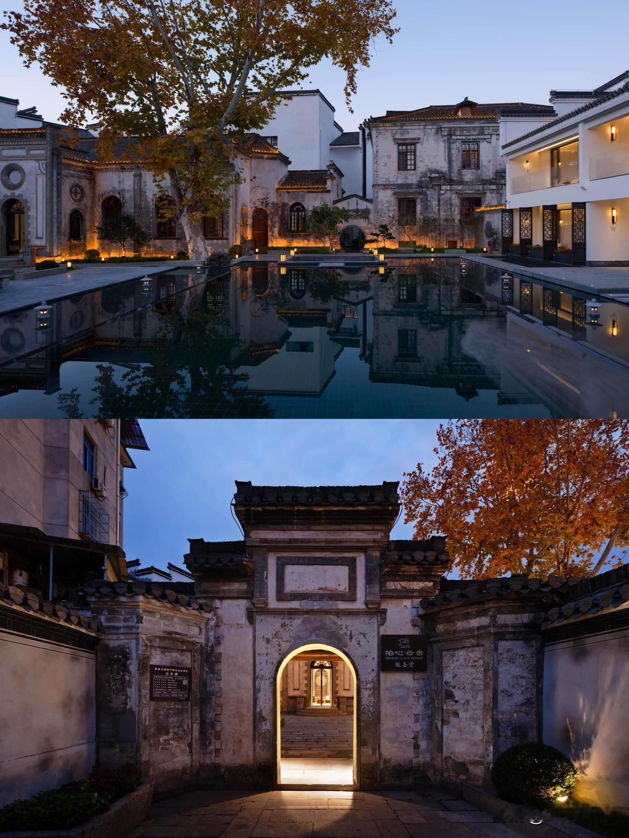 从建筑风格来看,民宿巧妙地强调了现代与徽式古典的平衡。三进院落,木质结构,阳光洒下,光影交错,好像让人穿越回了古代的典雅宅邸。青砖黛瓦隐匿在古城之中,与周围的环境完美融合,每一处细节都透露着徽派建筑的独特魅力。