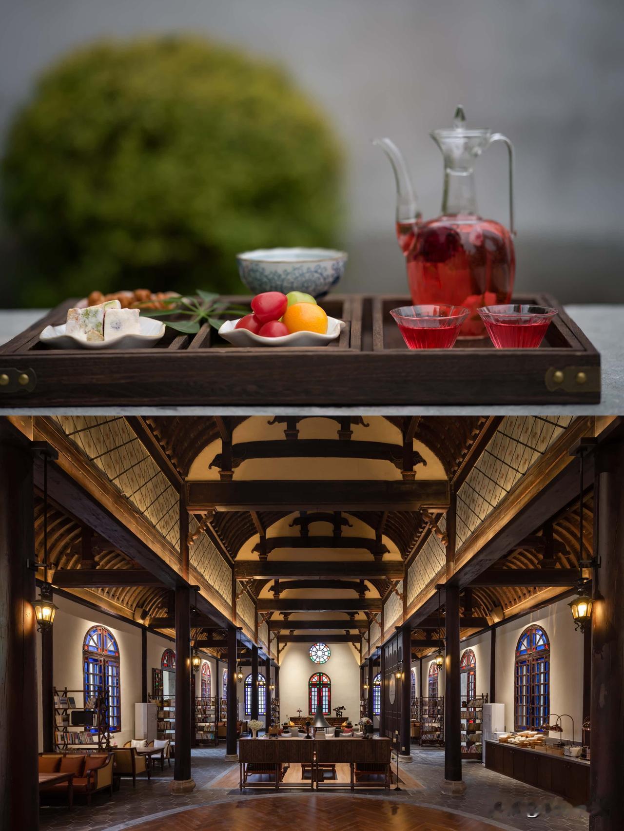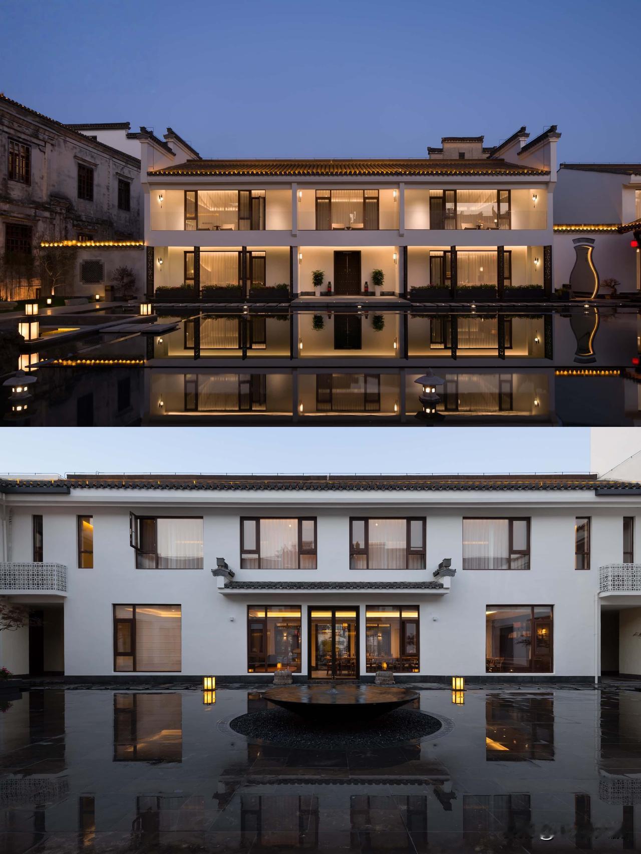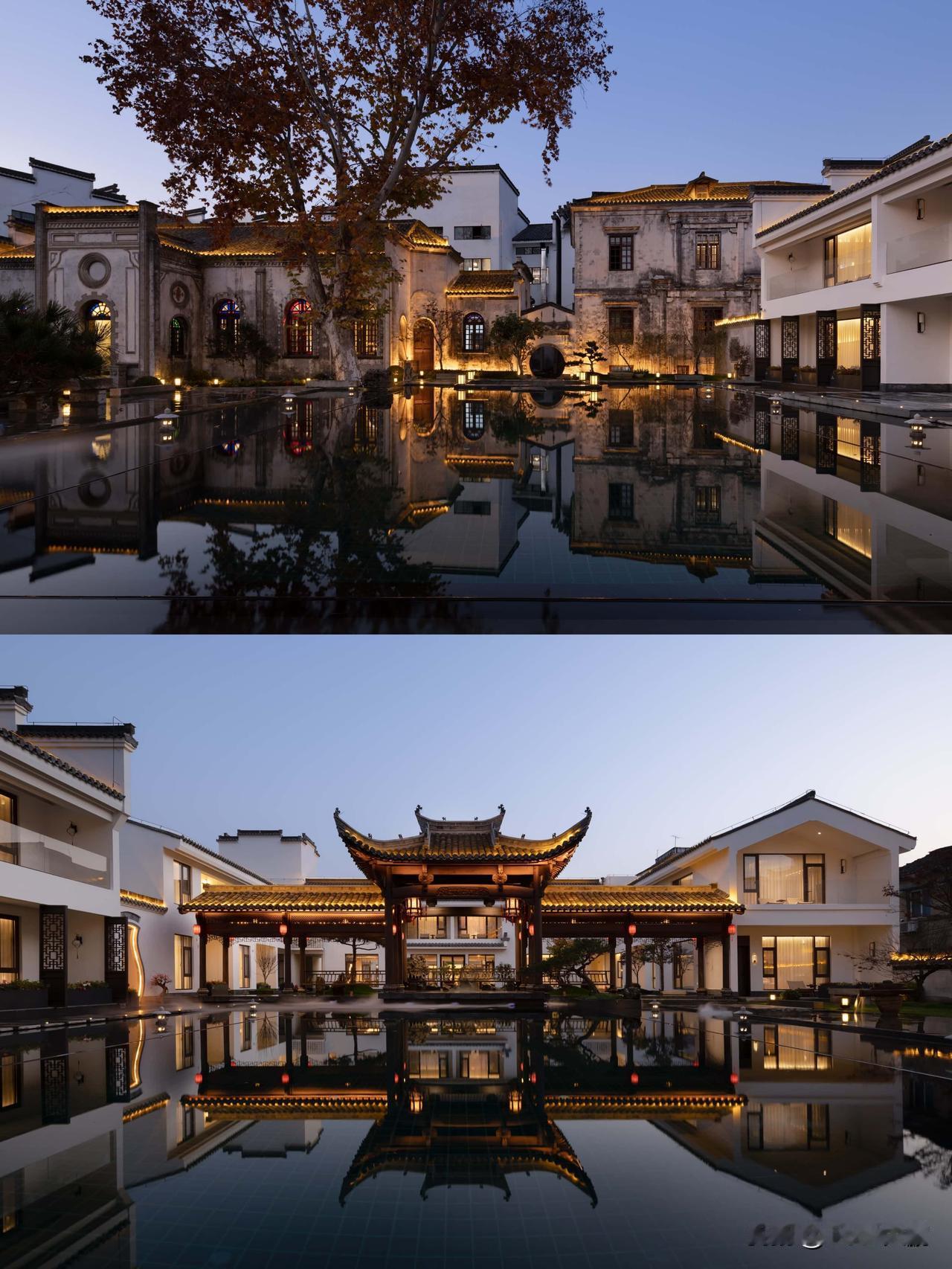 从建筑风格来看,民宿巧妙地强调了现代与徽式古典的平衡。三进院落,木质结构,阳光洒下,光影交错,好像让人穿越回了古代的典雅宅邸。青砖黛瓦隐匿在古城之中,与周围的环境完美融合,每一处细节都透露着徽派建筑的独特魅力。