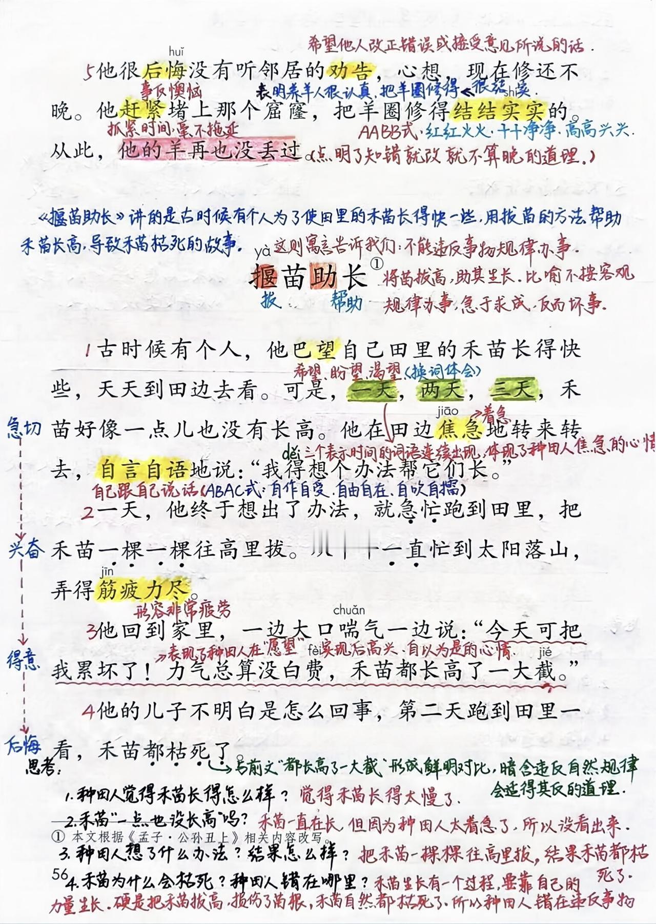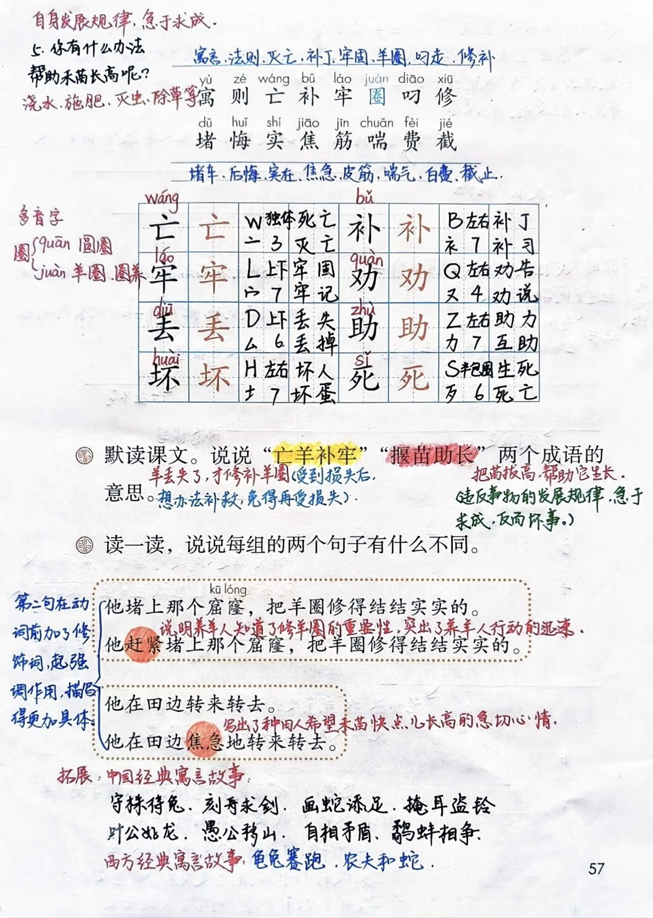 二年级下册语文,第五单元第11课《寓言二则》课堂学习笔记,收藏备用