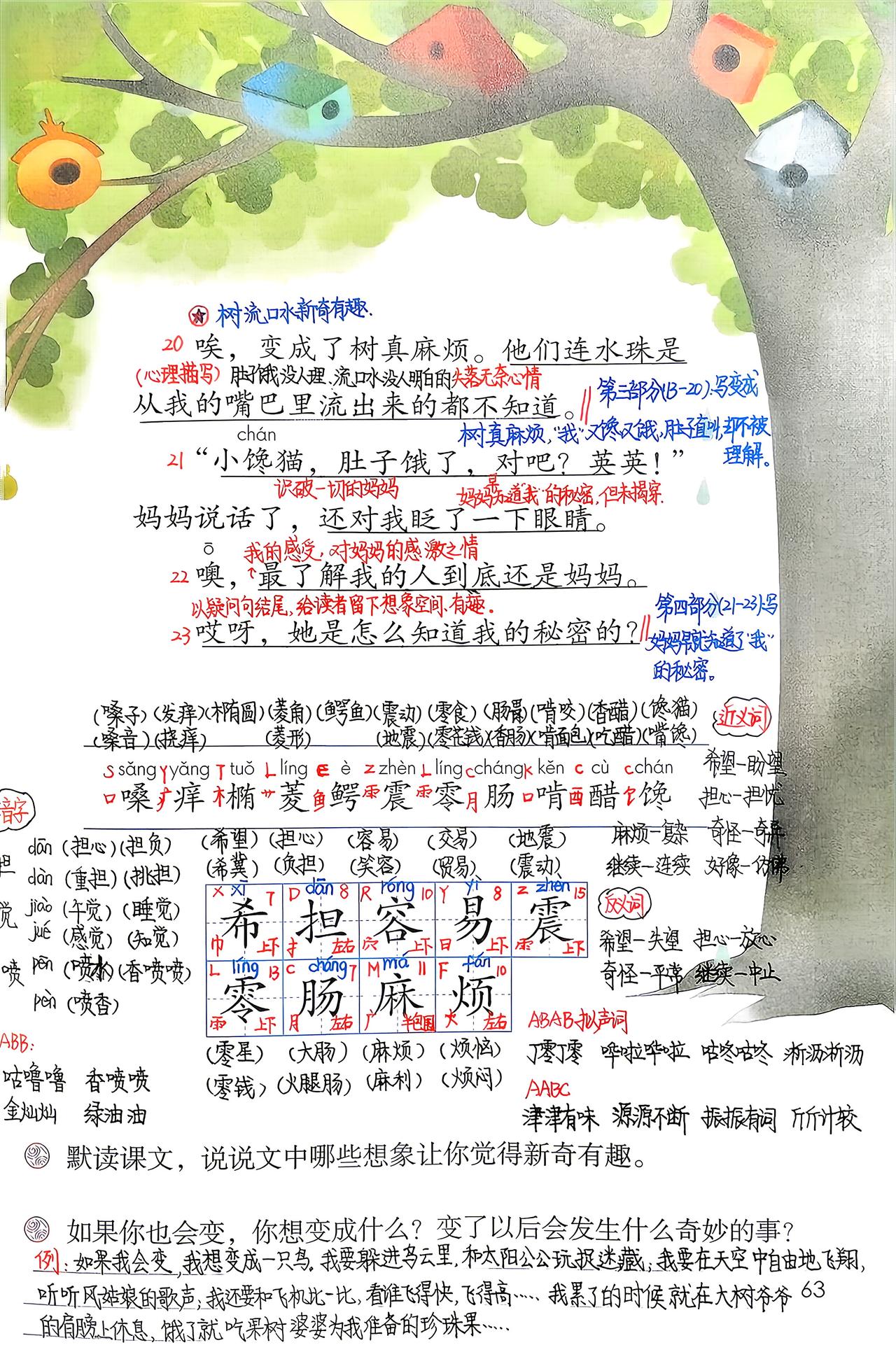 三年级下册语文,第五单元第17课《我变成了一棵树》课堂学习笔记,收藏备用