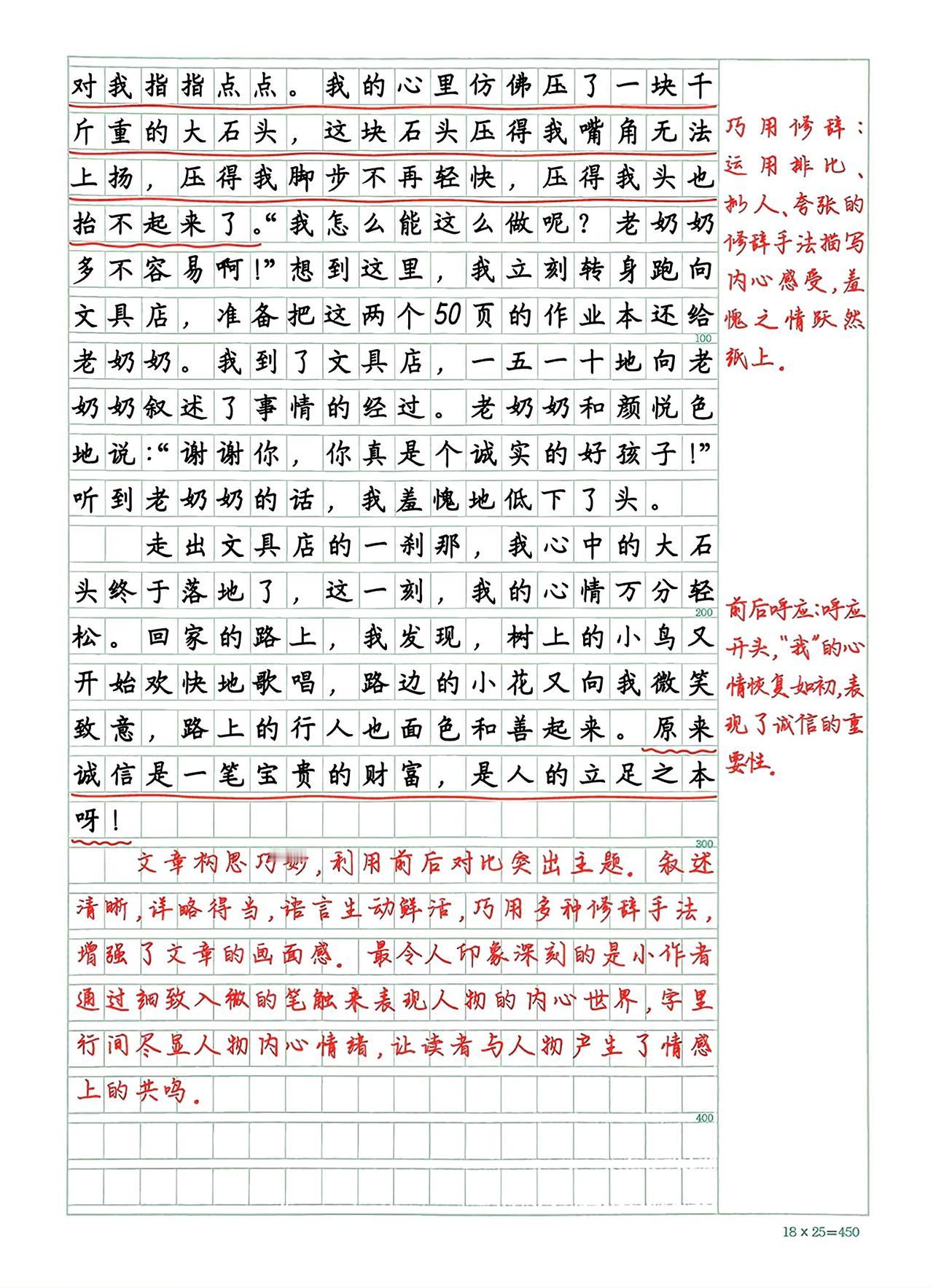 《那一刻,我心情多轻松》点评:文章构思巧妙,利用前后对比突出主题。叙述清晰,详略得当,语言生动鲜活,巧用多种修辞手法,增强了文章的画面感。最令人印象深刻的是小作者通过细致入微的笔触来表现人物的内心世界,字里行间尽显人物内心情绪,让读者与人物产生了情感上的共鸣。