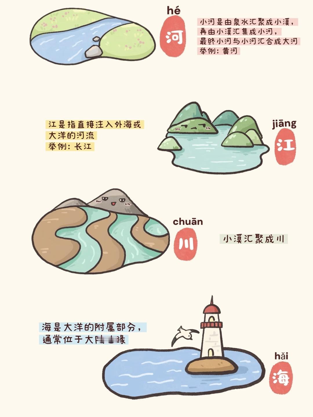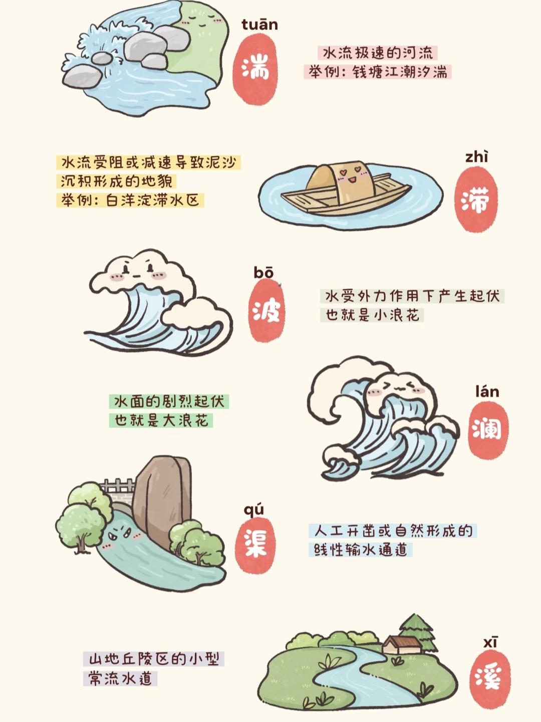 【文学常识】水的各种形态和不同叫法,一图秒懂!一起学习水的不同叫法,感受中华文化的博大精深!