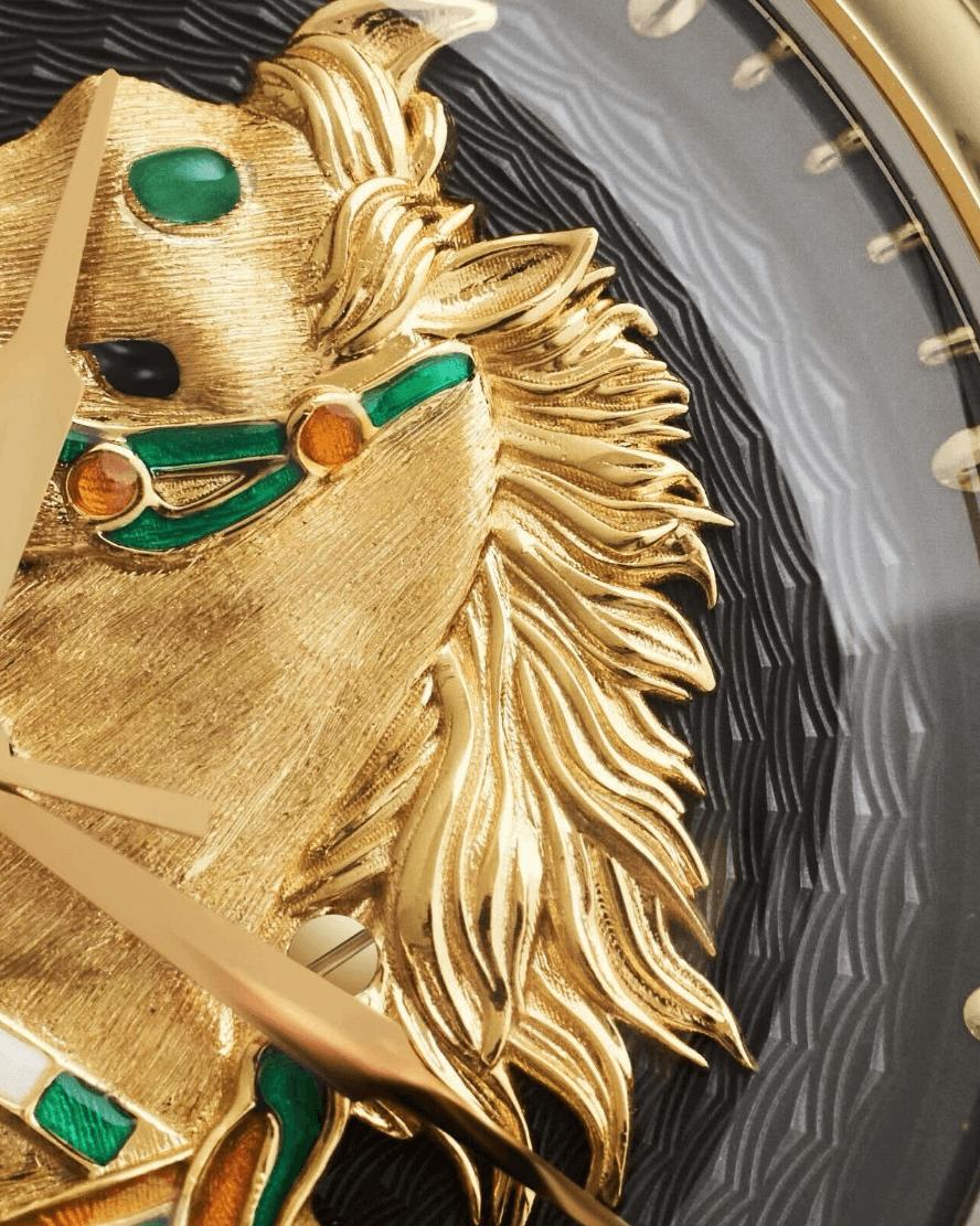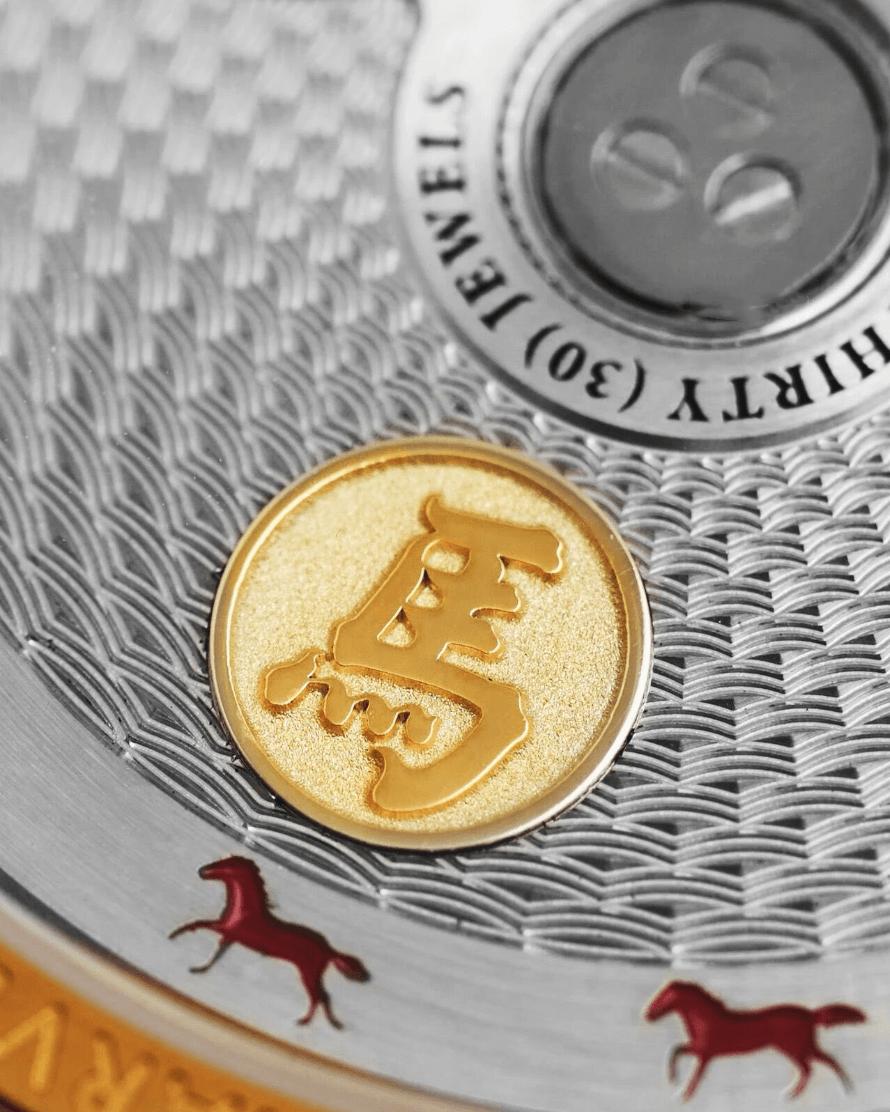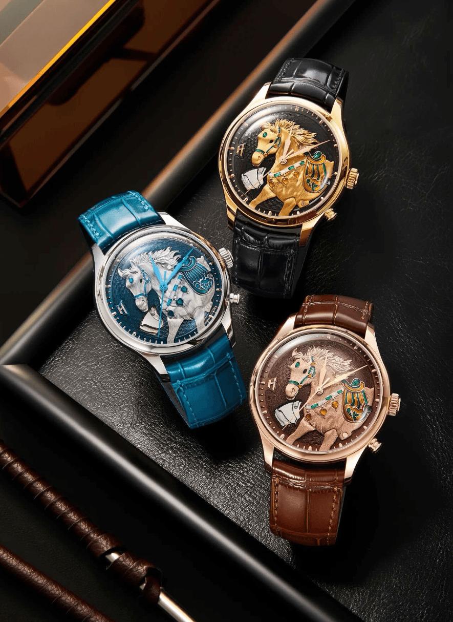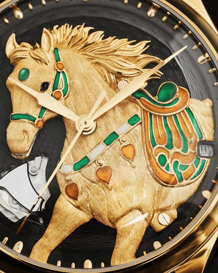 【这才是马年腕表的顶流 国表】当我第一眼看见这只腕表的时候,万万没想到,这竟然是一只国产腕表,真乐时确实惊讶到我,具备顶奢级自鸣钟功能,万元级有自鸣钟功能的腕表,仅此一家,要知道百达翡丽自鸣钟起步在80万多,腕表还融合了动偶,采用玑镂、金雕、珐琅,骏马跃然表盘,惟妙惟肖,每到整点,马嘴会张开,伴随着清脆的叮声,背透机芯也有新意,有一枚马年金币,外圈是奔腾的红色马雕,每一只马都不一样,是奔腾时候的一个动作,抛开机芯不谈,国产腕表的设计真正站起来了,您如何评价这只国产腕表?留言和表友探讨。二手腕表
