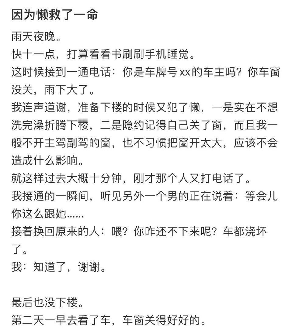 因为懒救了一命