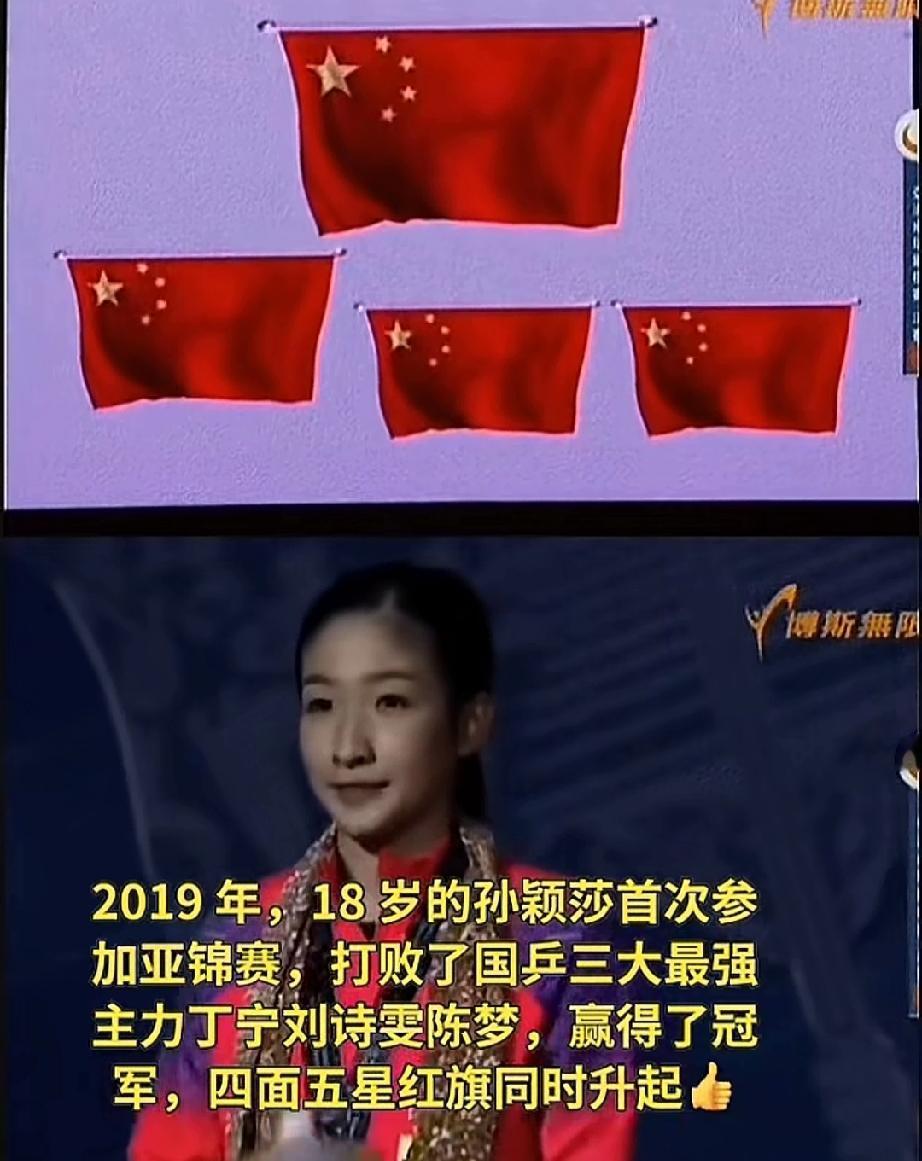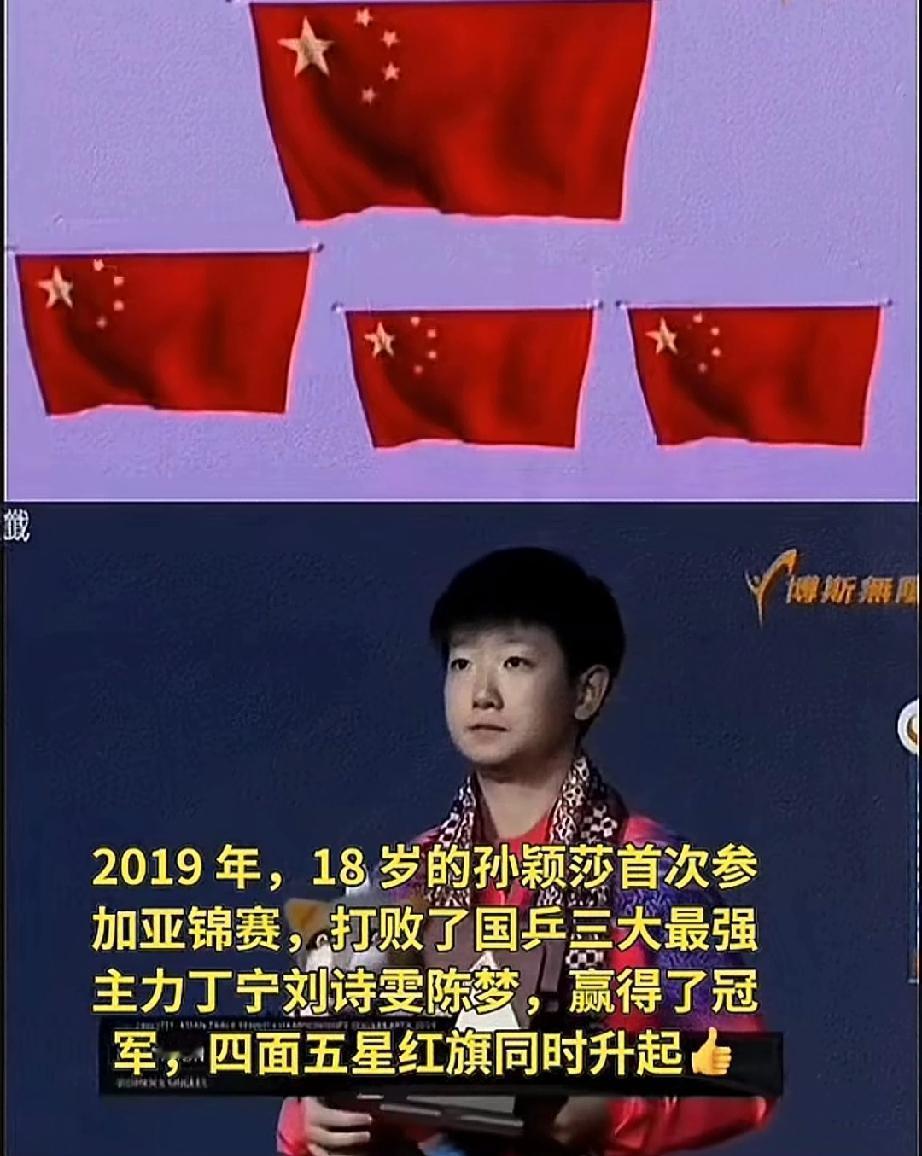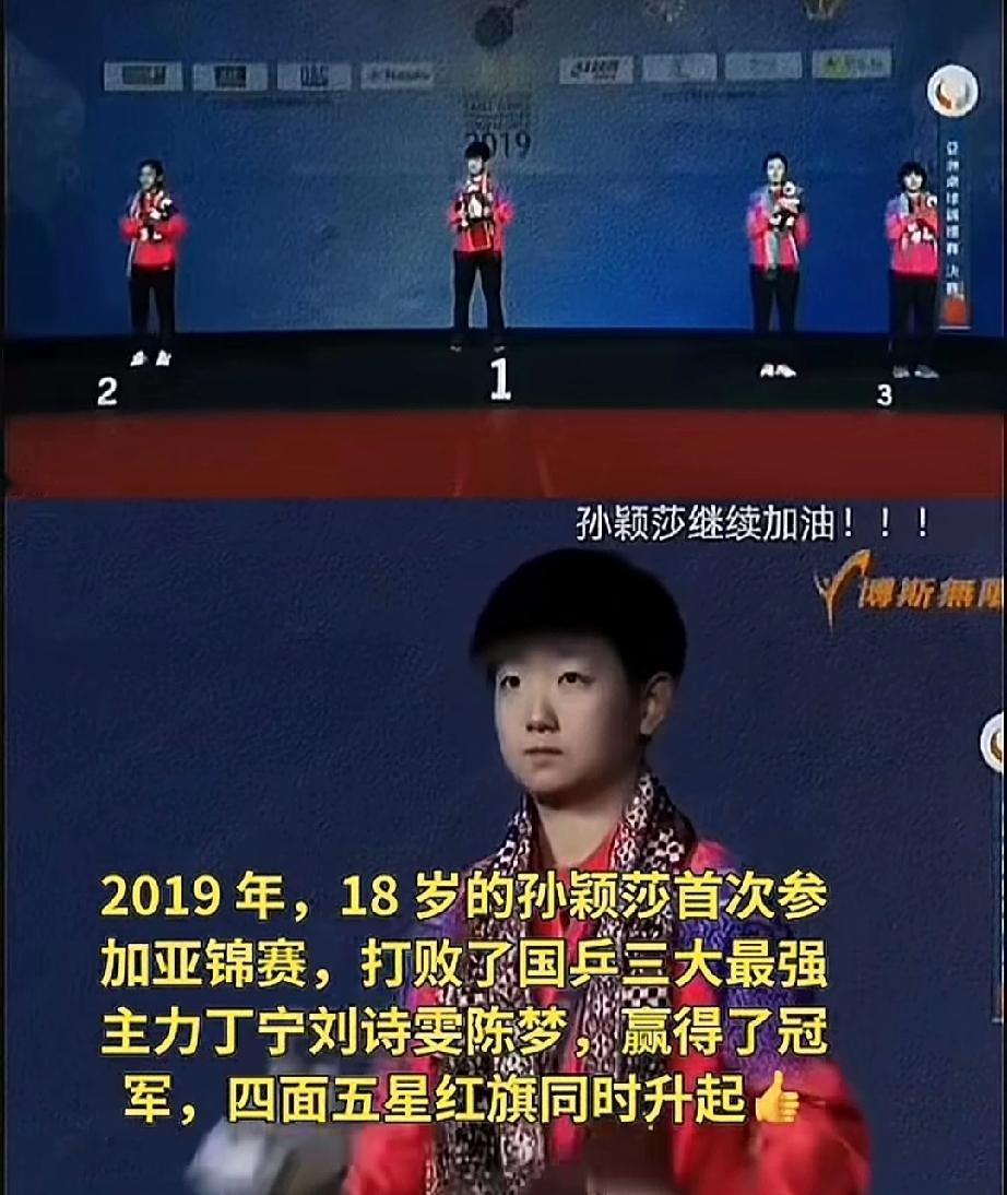 2019年18岁的小将孙颖莎,首次参加亚锦赛,就打败了国乒三大主力,丁宁、刘诗雯、陈梦。