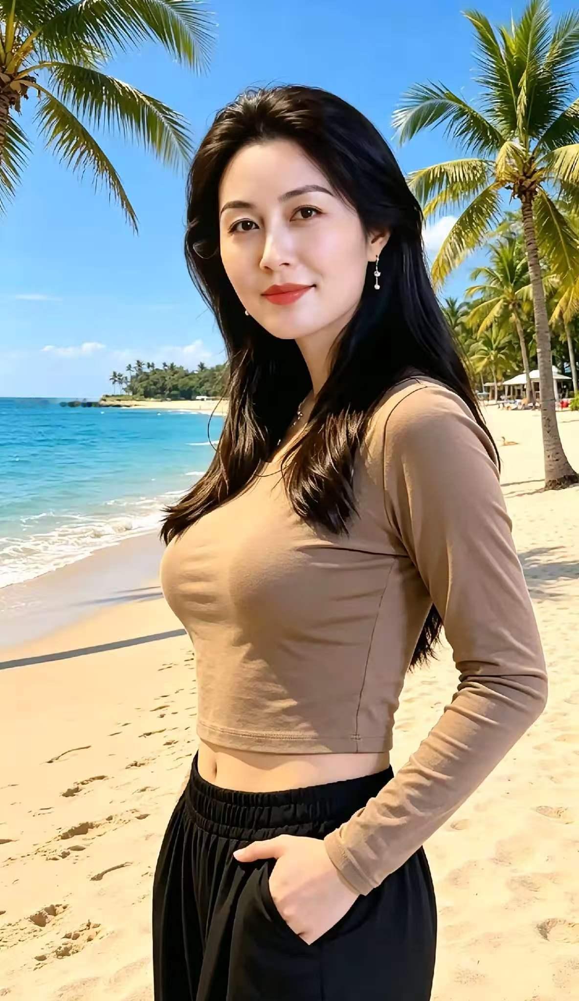 捣练子·滩头 风拂袖,影凝眸, 棕衫轻裹椰韵柔。 耳底潮声云作伴, 一襟清意立沙