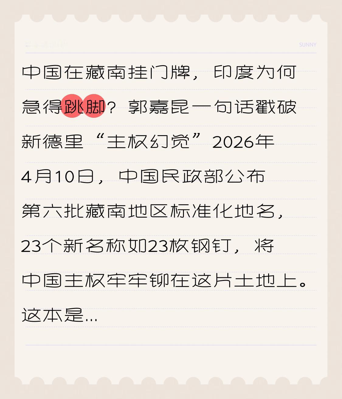 中国在藏南挂门牌,印度为何急得跳脚?郭嘉昆一句话戳破新德里“主权幻觉” 2026