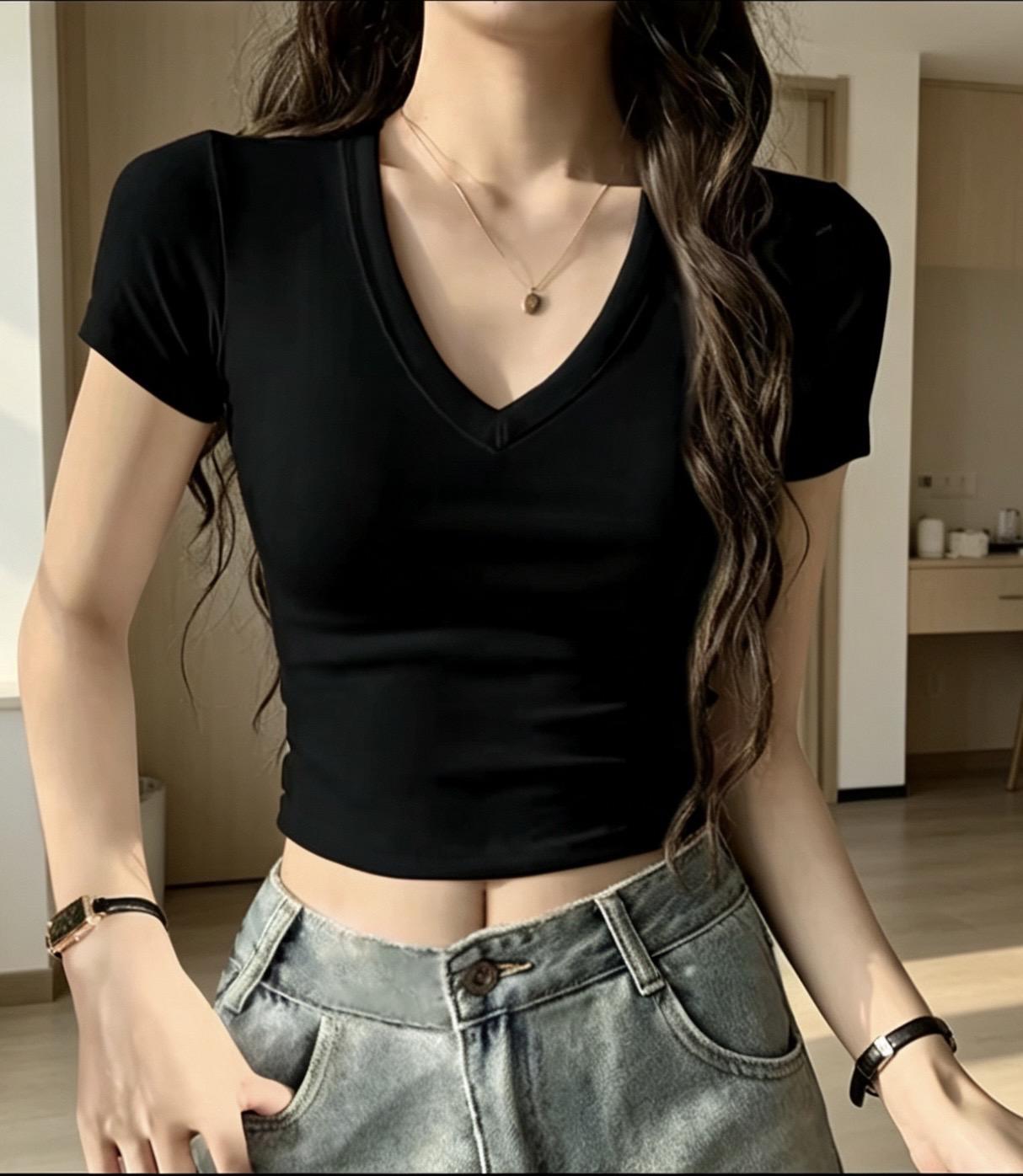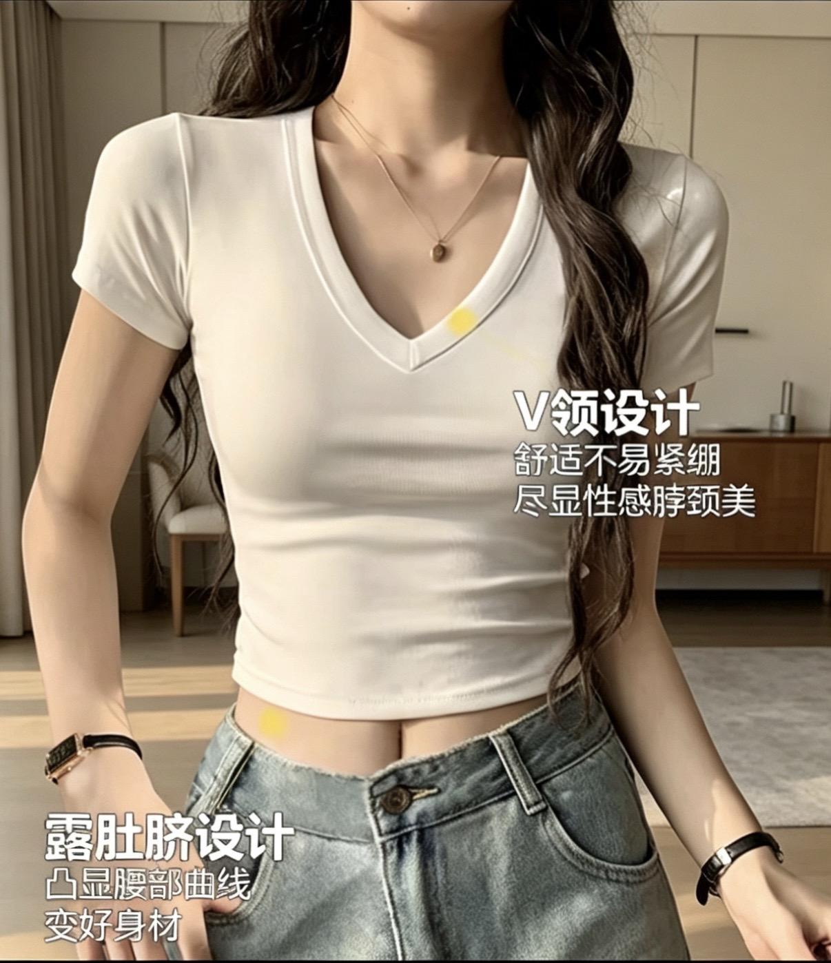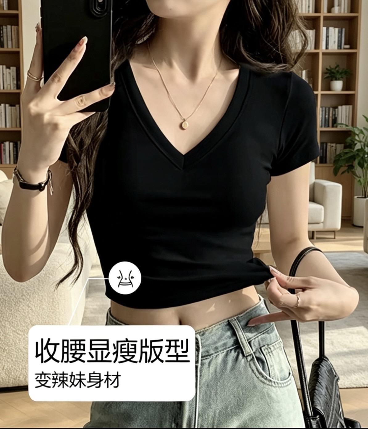 短袖上衣 v领上衣 修身短袖 T恤 百搭上衣