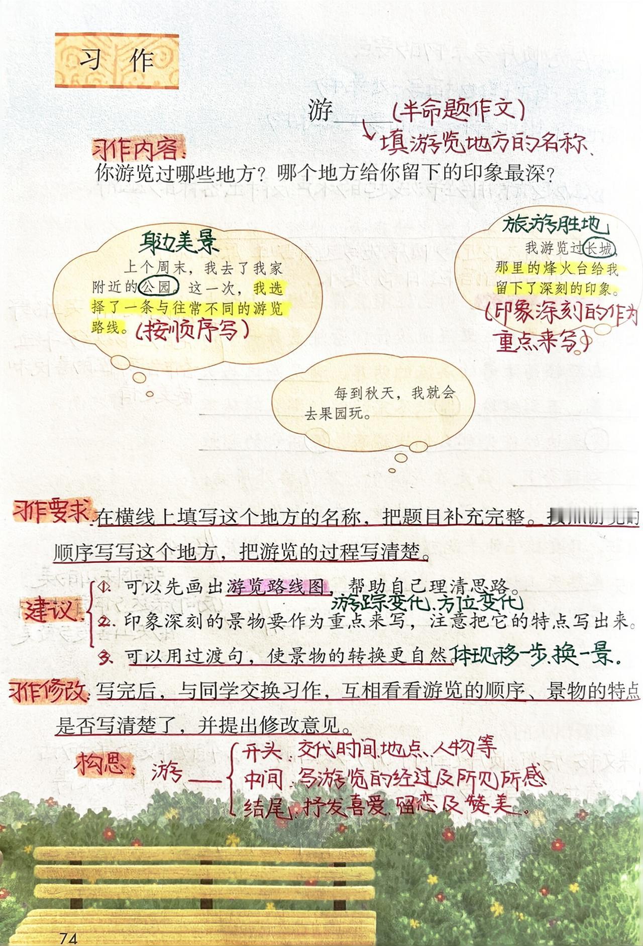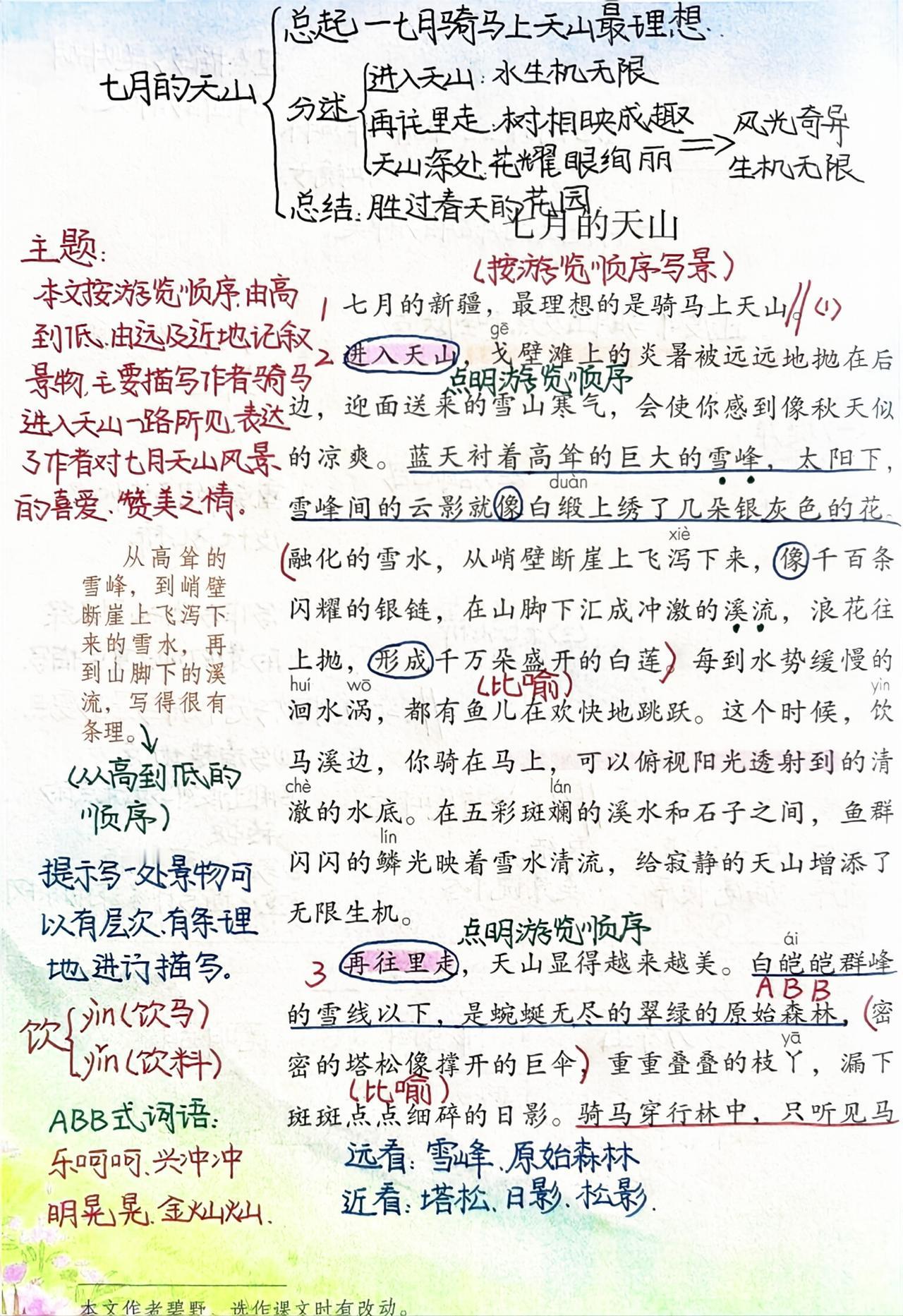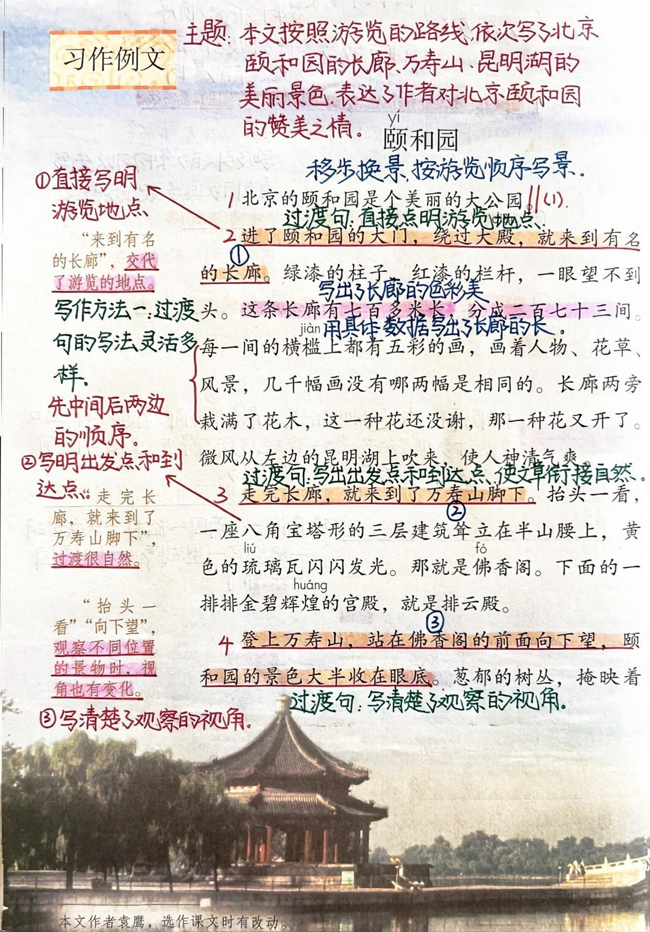 四年级下册语文,第五单元《习作例文》课堂学习笔记,收藏备用