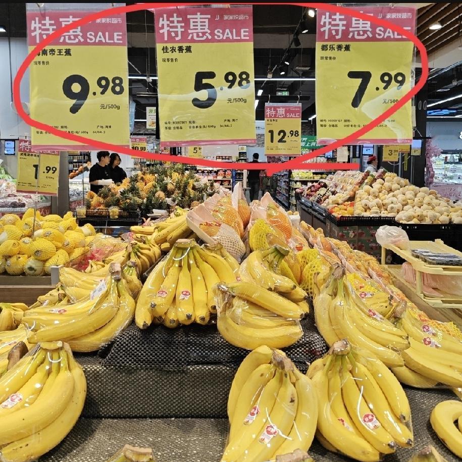 单说香蕉吧,有9.98元一斤的,7.99元一斤的,最便宜的也5.98元一斤。