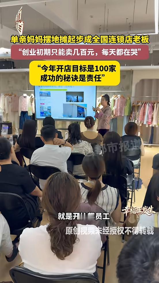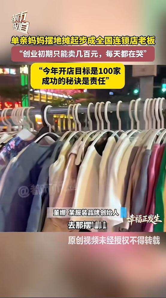 (信息来源:《单亲妈妈摆地摊起步成全国连锁店老板“创业初期只能卖几百元,每天都在哭”“今年的开店目标是100家,成功的秘诀是责任”》都市报道)