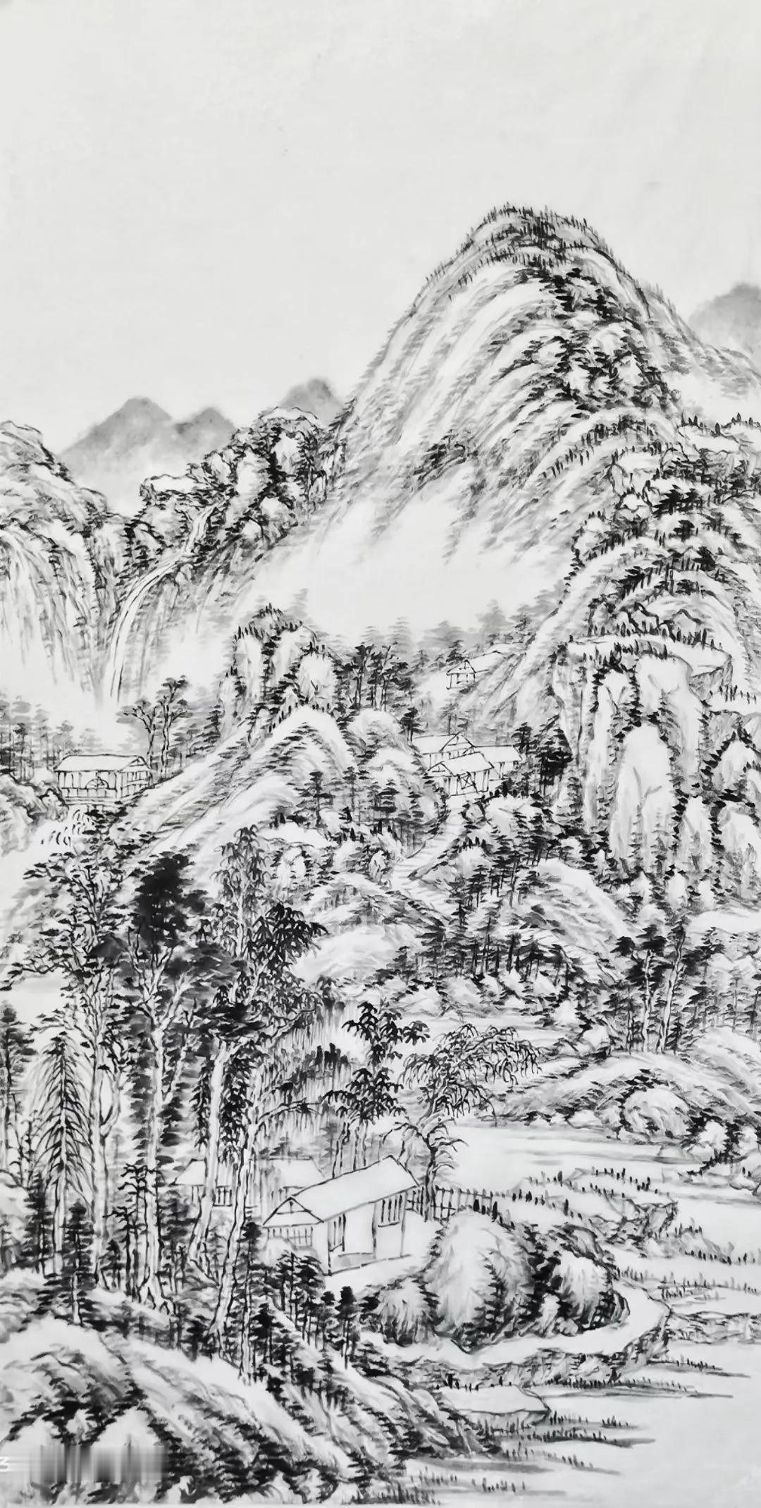 倏而微雨蒙蒙,烟霏四起,山石愈显苍润古雅。亭影悠然,渔翁静钓,水天一色,尽是清绝之境。