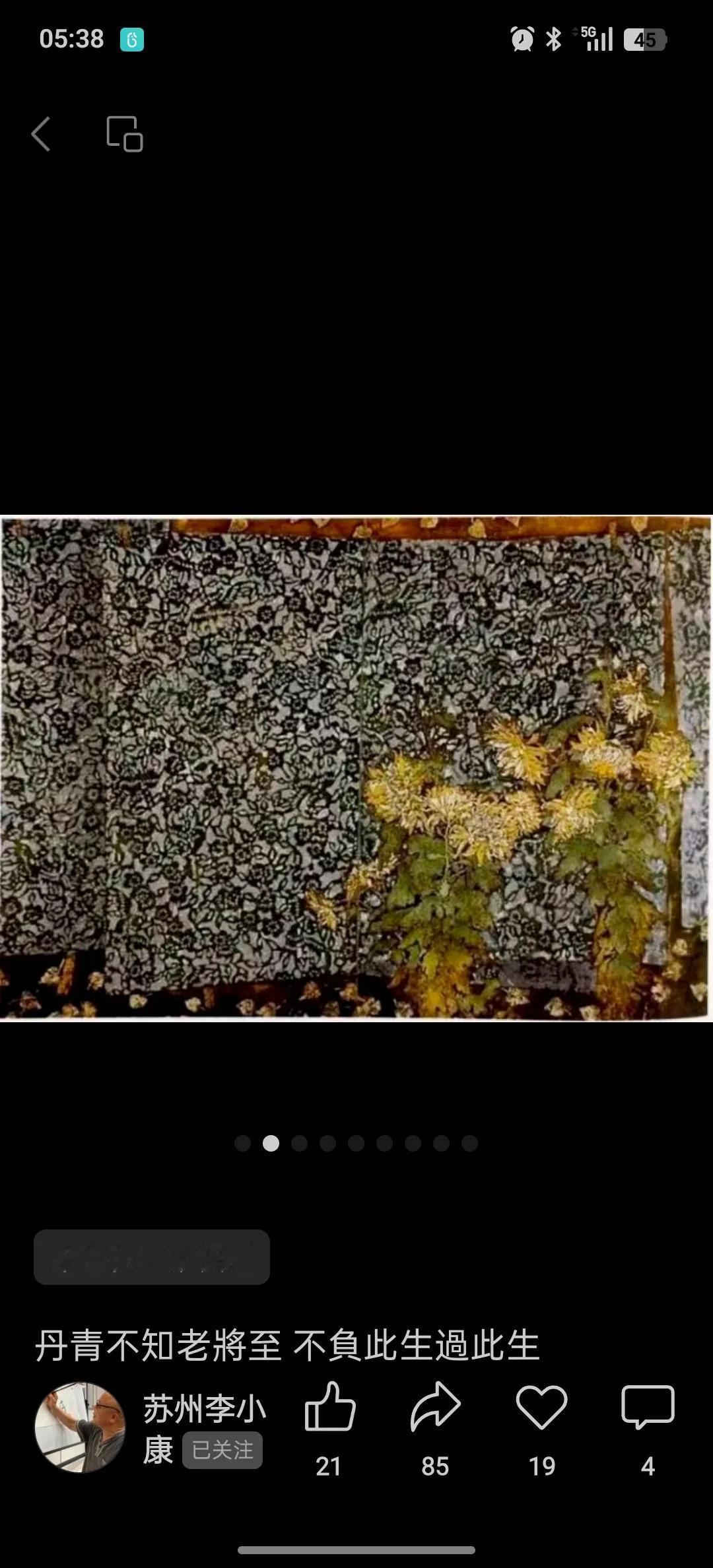 老师不差钱,退休金高。他的磨漆画是一绝,换钱又快,生活恣意潇洒。他退而不休,兴致勃勃给泰康养老的长者们授课,讲得眉飞色舞。还常常邀我去坐坐,我一直没空。