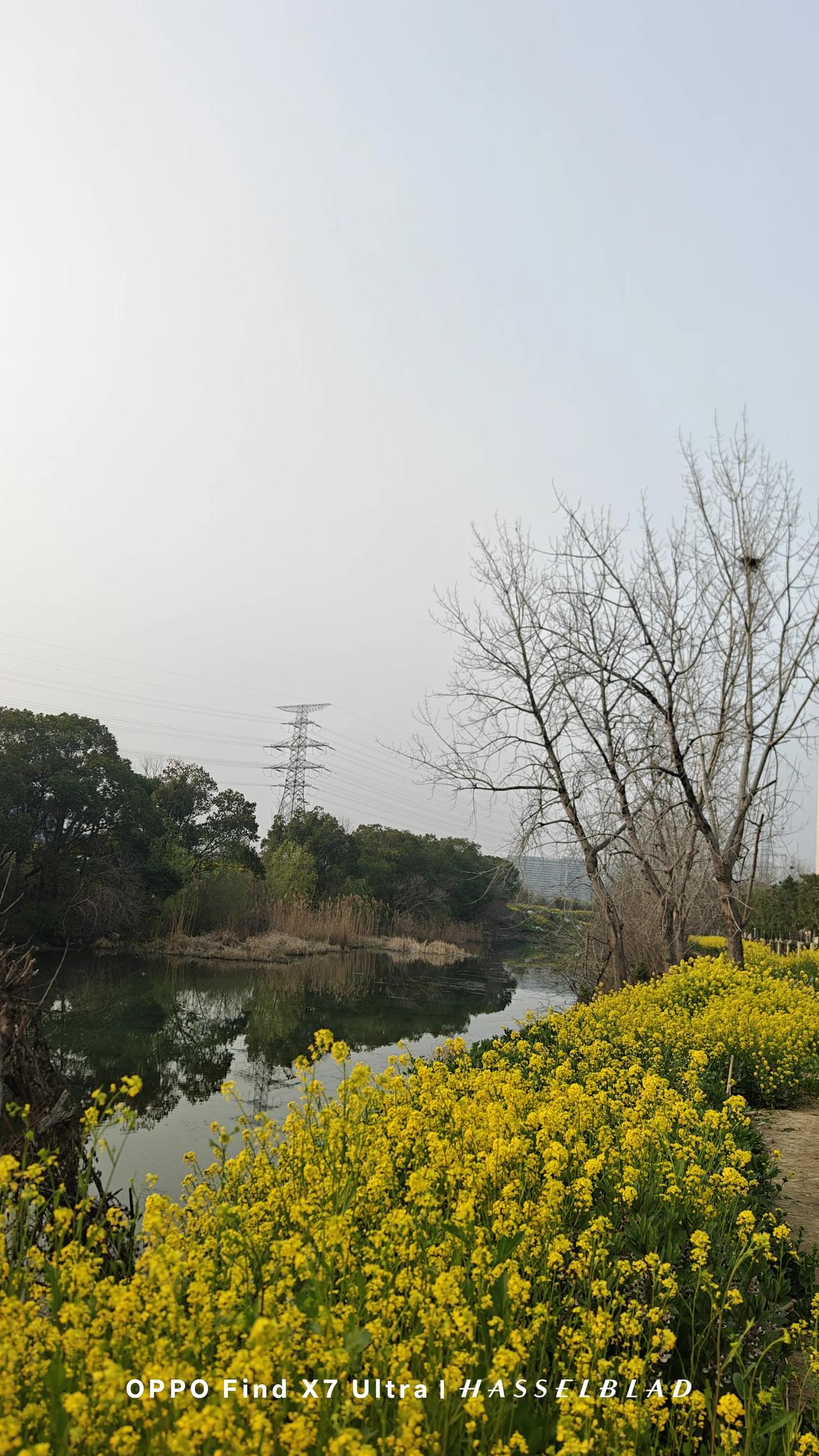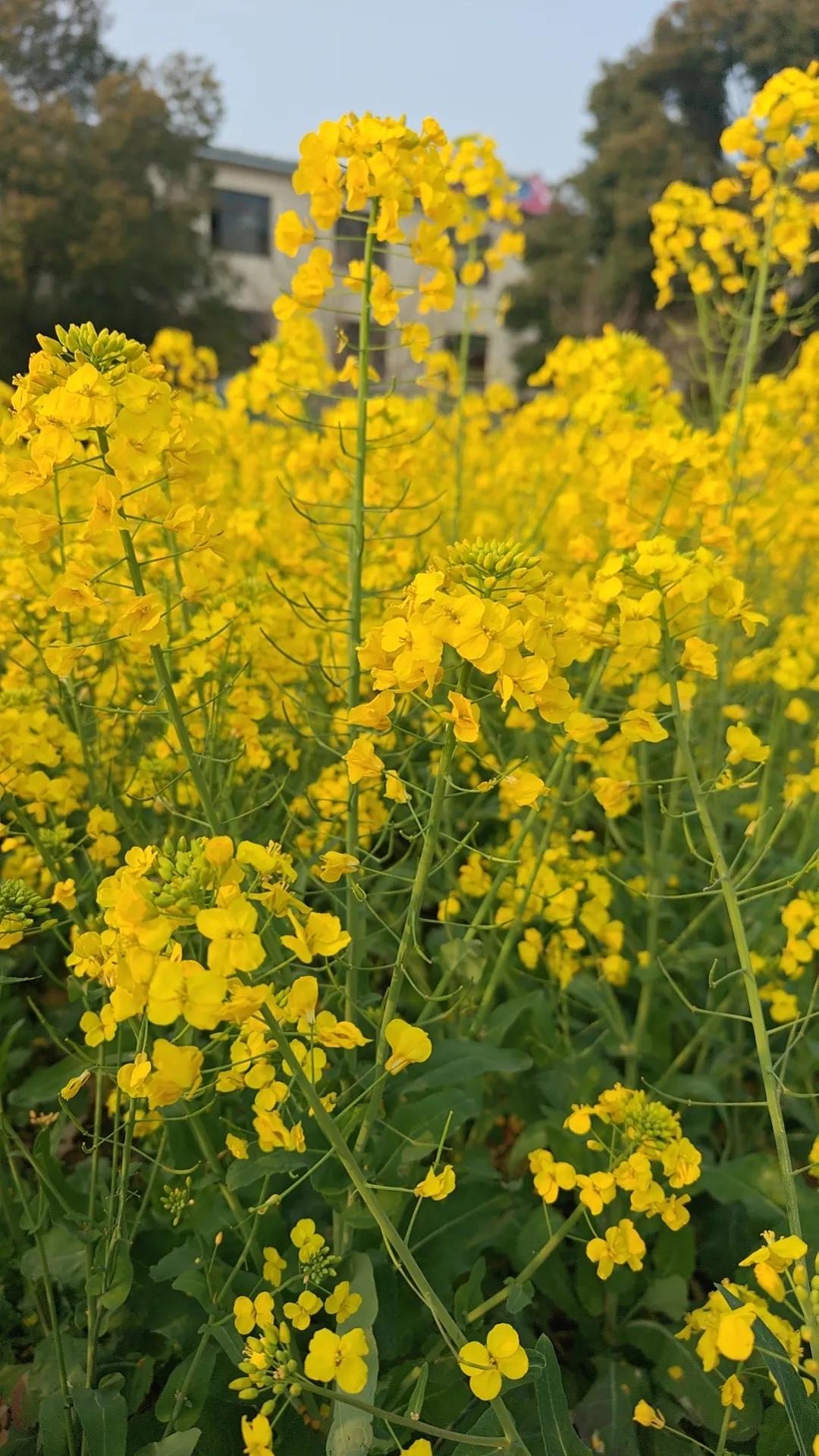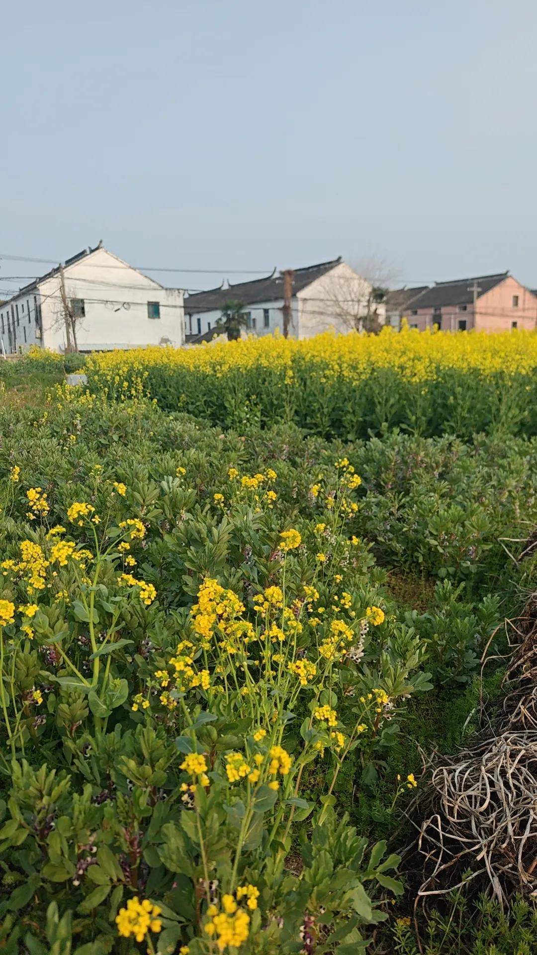 河边盛开着成片金黄的油菜花,紫白的豆花。菜花灼灼黄艳,热烈奔放。蚕豆花紫白含蓄,像卧在眼帘中的少女羞涩的黑瞳。