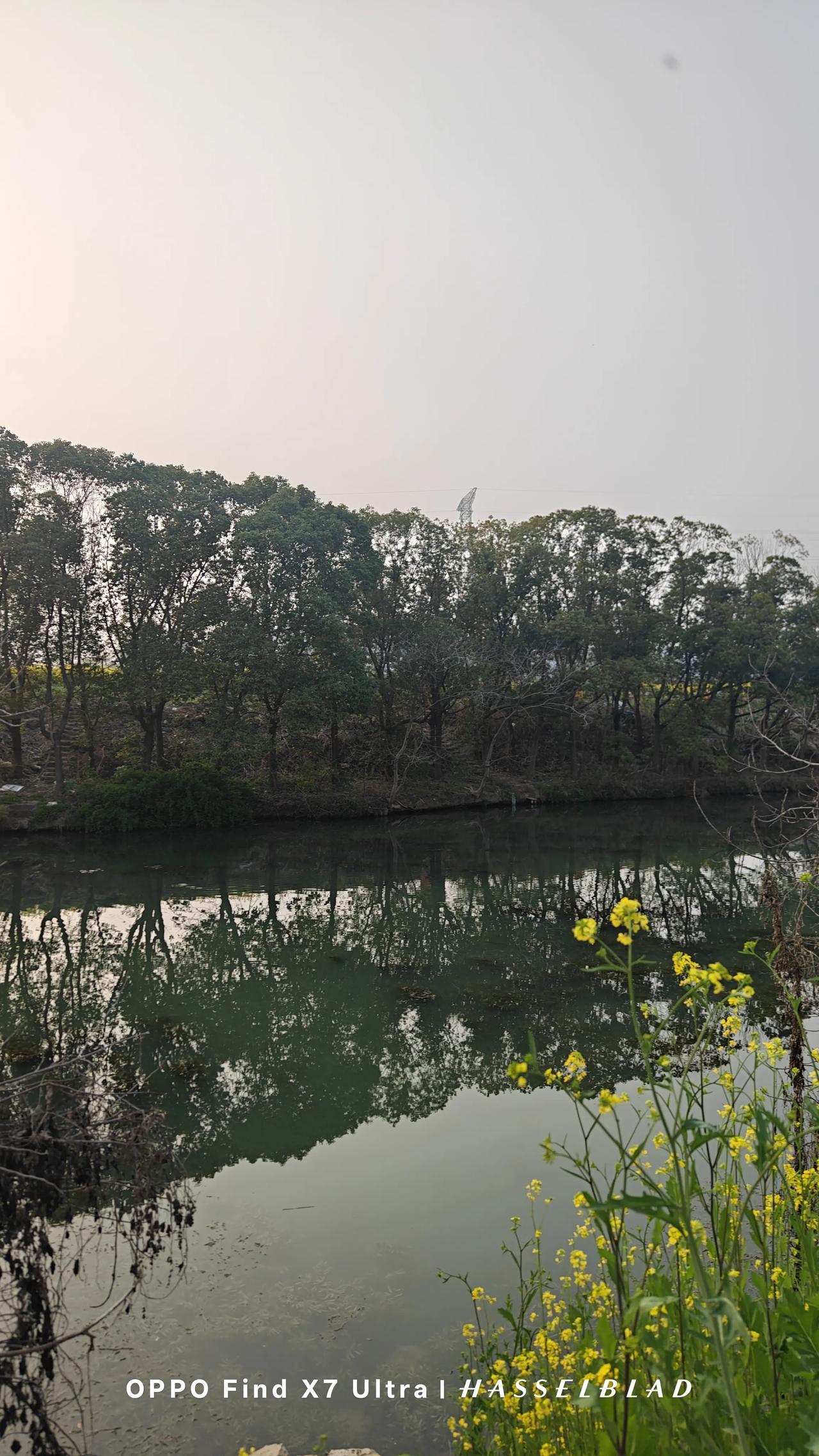 限时发文。 我走在河边。树木的倒影在水中呈现出清晰灰暗的映像。河床浅显,河水微