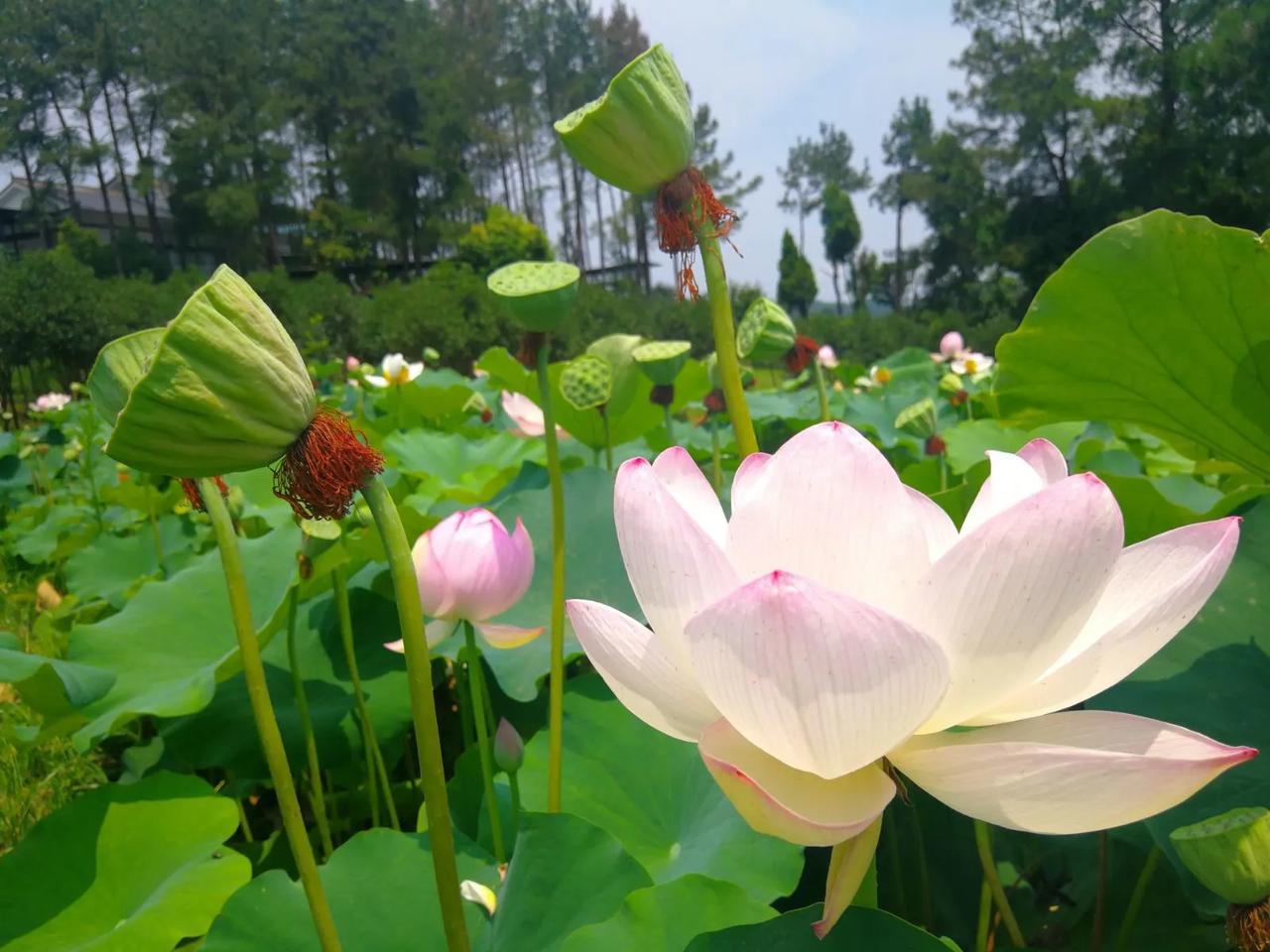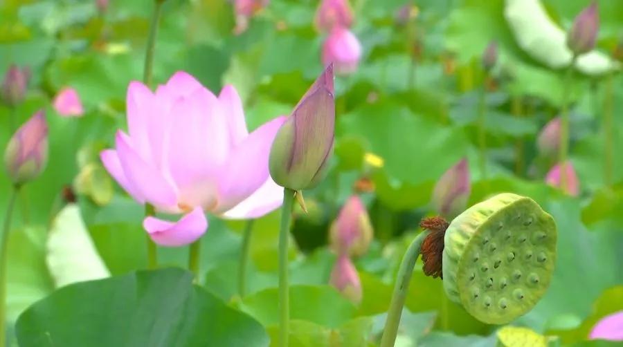 别名:荷花、莲藕、莲子等,属于睡莲科多年生水生草本,在咱们国家分布超广,全国各地的池塘、河湖里都能见到它的身影,花果期集中在7-9月,正是盛夏最亮眼的水生植物。