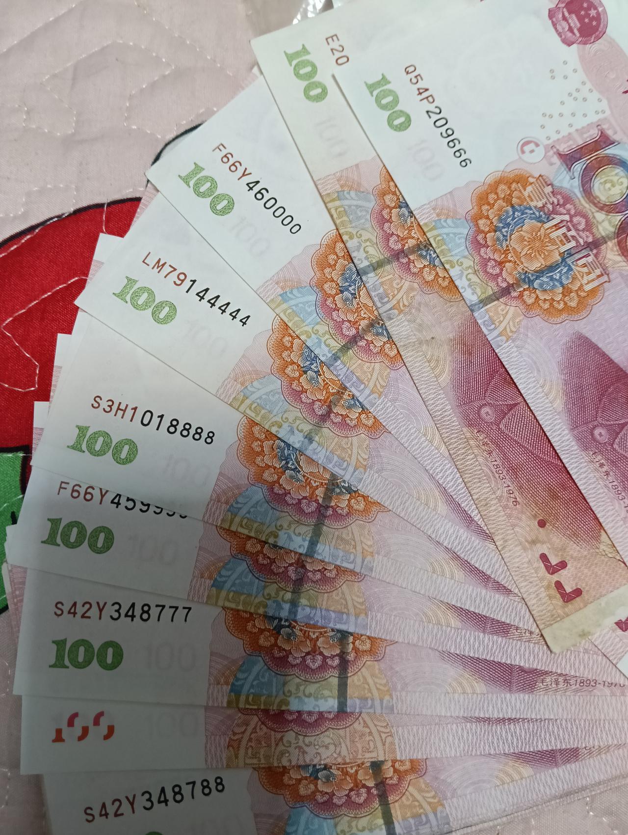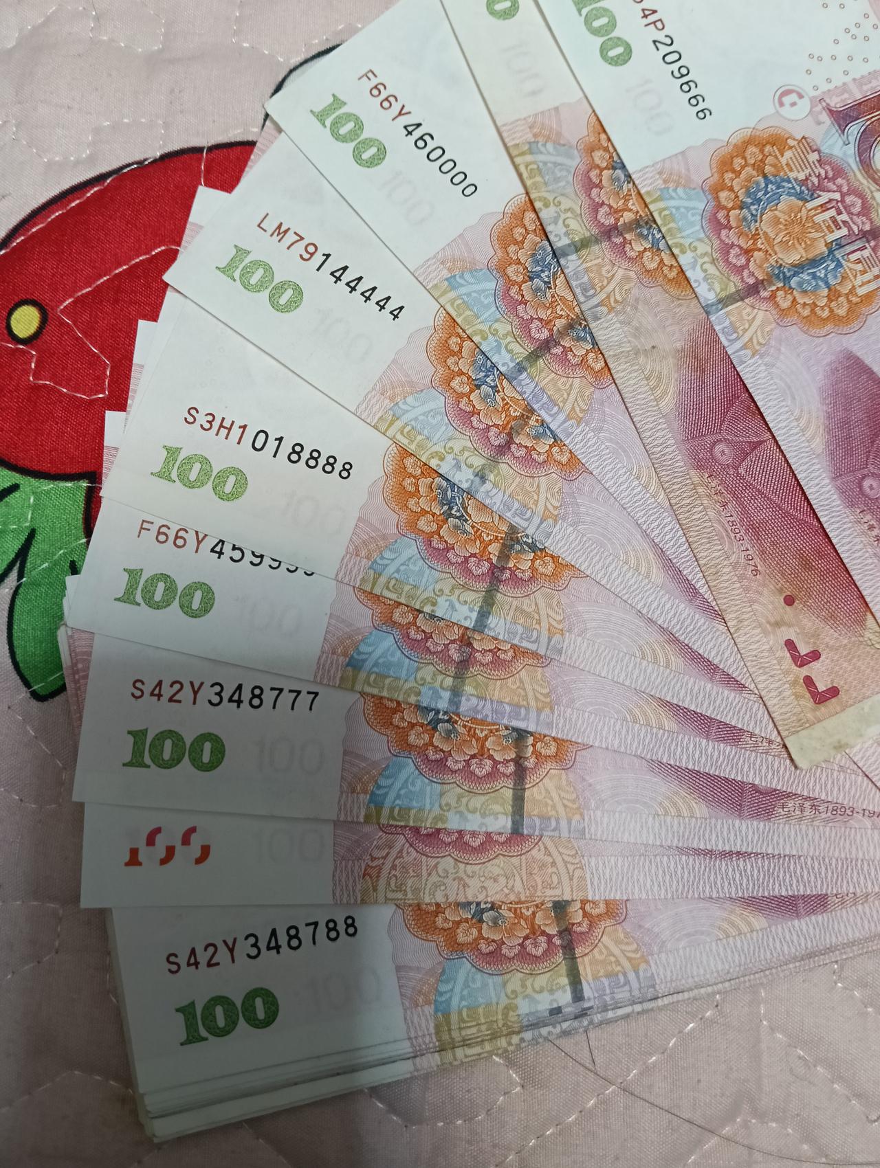 今天整理纪念币,发现还有一叠百元大钞,号码都是吉祥号,20多张都是99年版本的。