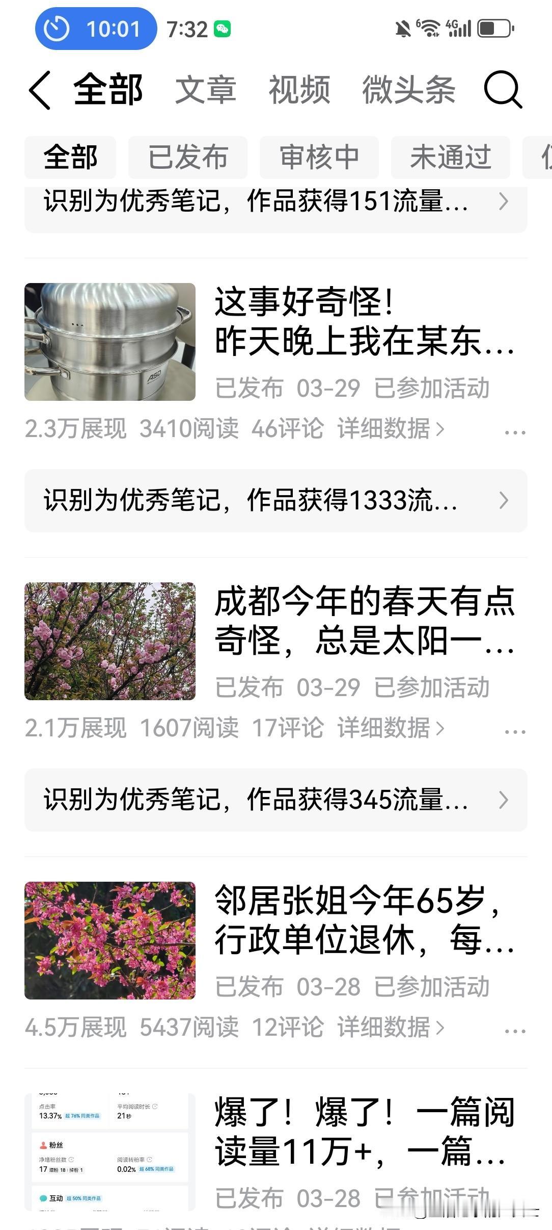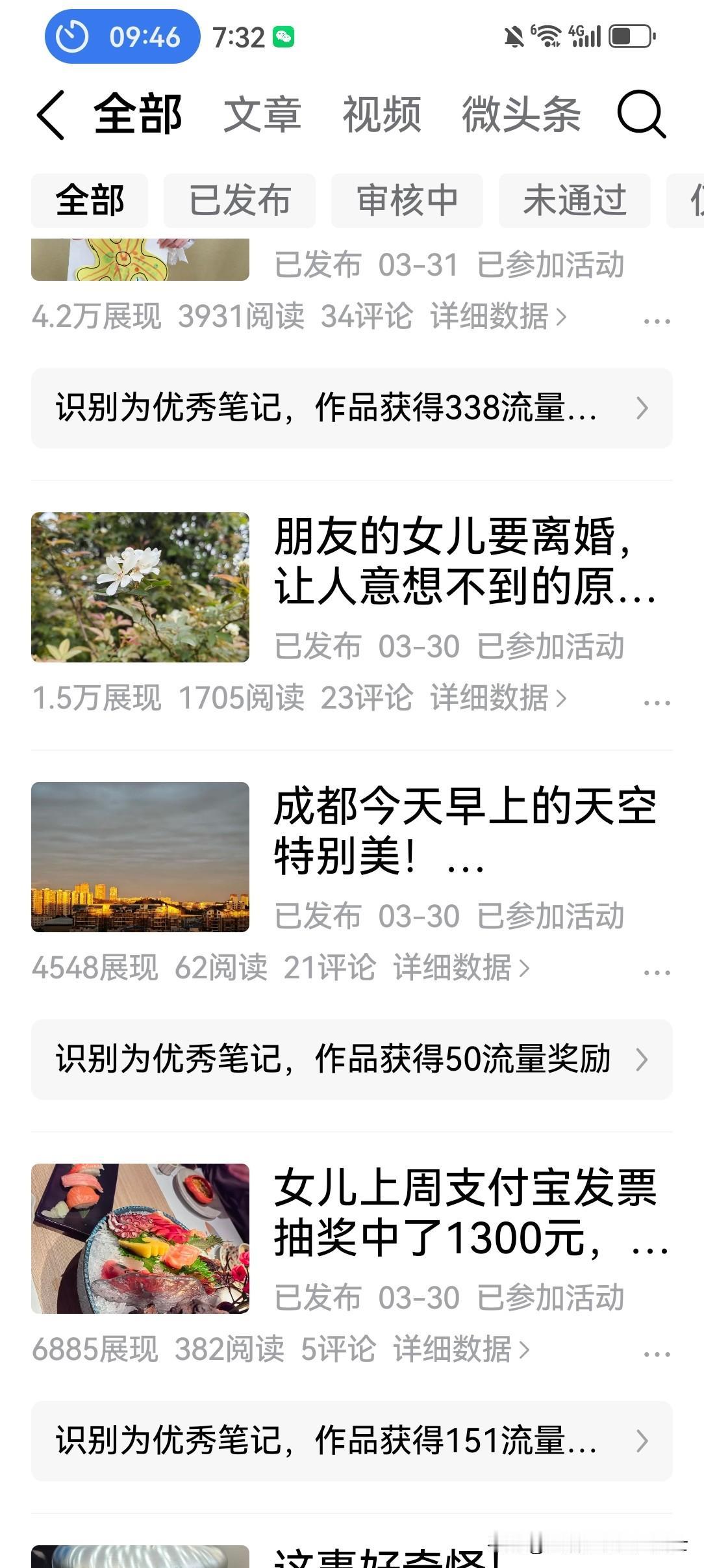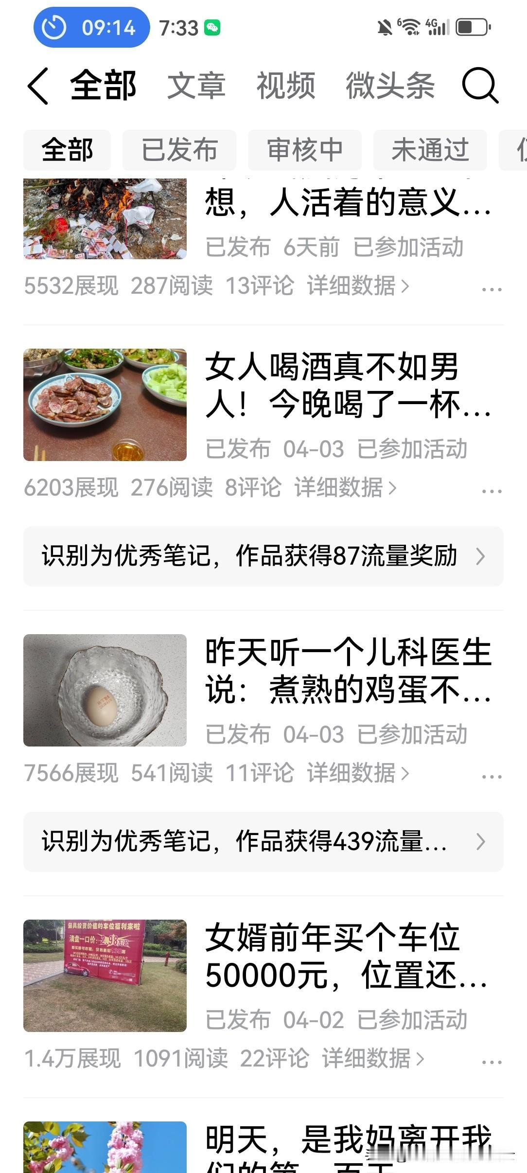 早上打开头条,看见作品下有一行小字,把我惊了一跳,我以为自己犯规了。结果仔细一瞧,才发现原来不是,这行小字是“识别为优秀笔记,作品获得xx流量”。