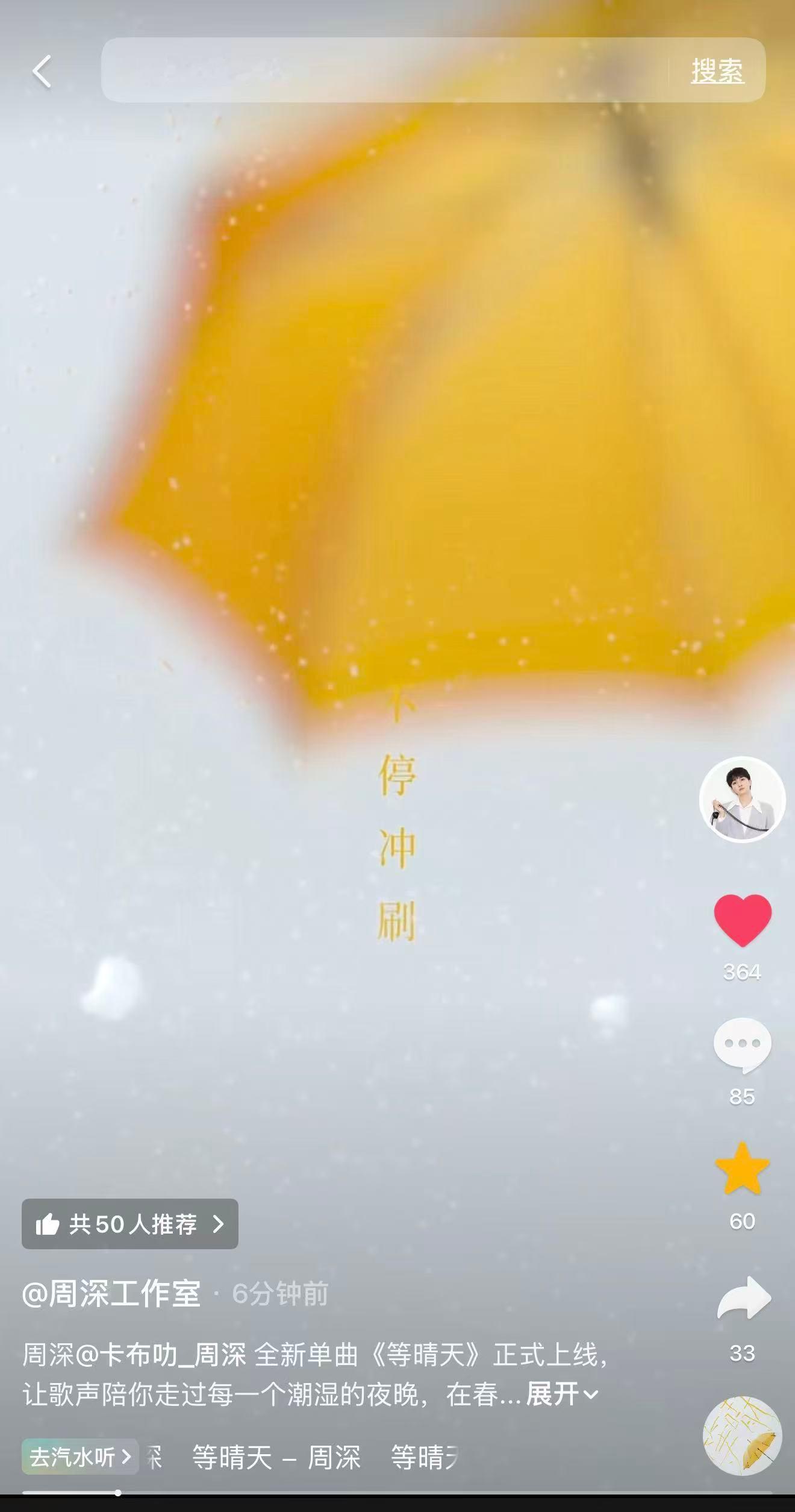 柿子的🎶和v✉️都更了新单曲《等晴天》的短视频,米米们快来完整观看然后三连