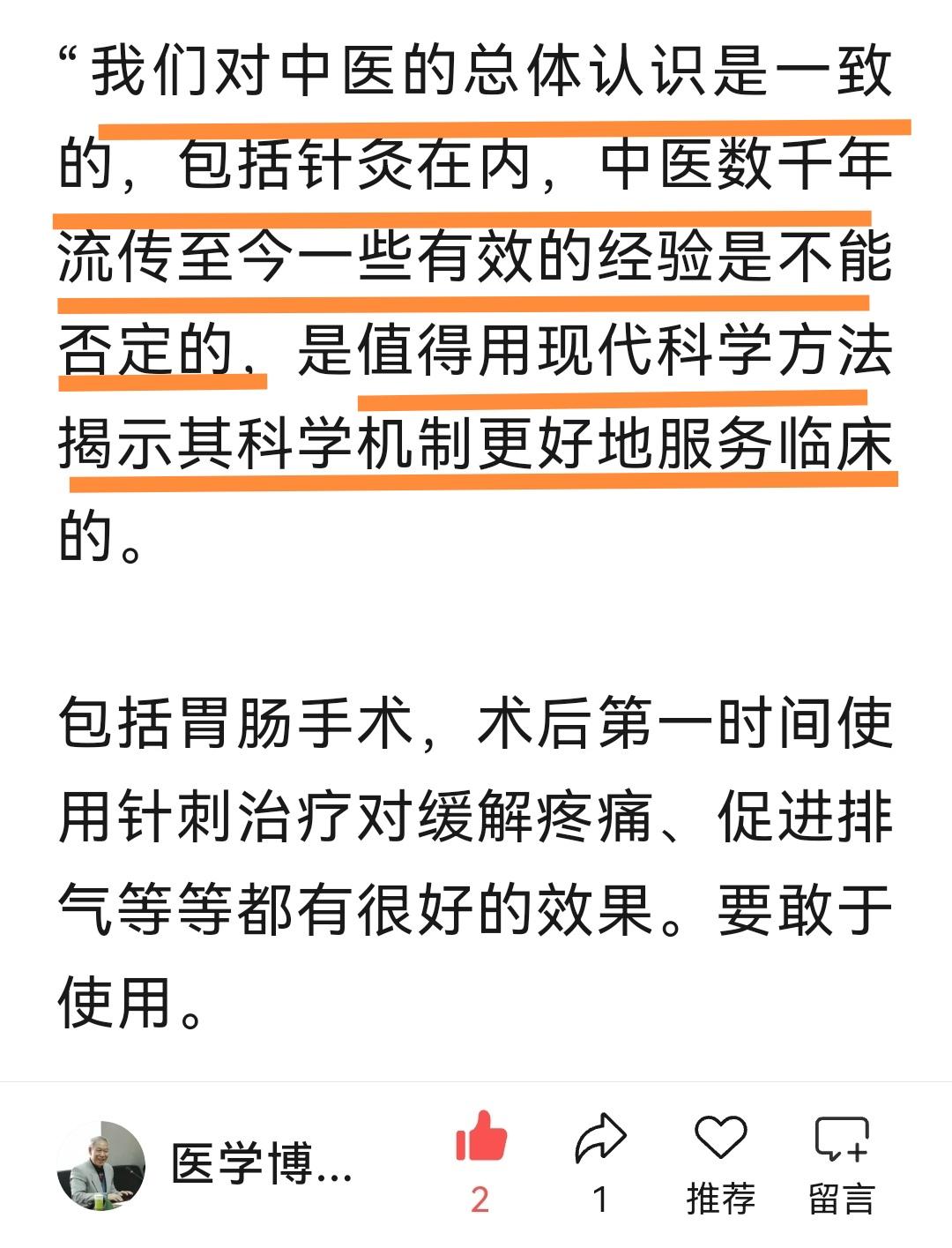 张洪林教授指出中医数千年经验不容否认,值得用现代科学方法揭示机制并服务群众。张洪林教授在回复中鼓励年轻人在专业基础上加强辩证唯物哲学、逻辑学和心理学的学习。张洪林教授否定经络实体存在,论证经络作用主要是神经内分泌体系的作用,受到一些思想片面者的误解,给张洪林教授扣上反中医的帽子,实在幼稚可笑。而搞科学研究,无论理科还是文科,在专业基础知识上,还需要唯物辩证思想,逻辑思维和心理学知识,否则就会受到虚妄思想的影响而误入歧途。张洪林教授的谆谆教诲,实在是一个老科学家对科学事业的钟爱和对年轻人的热切期望。
