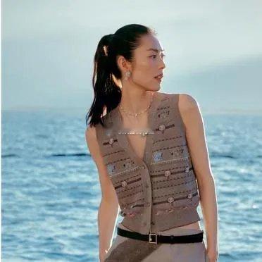 刘雯V领马甲利落又显精致锁骨,半身裙摇曳间尽显优雅风情,轻松营造出高级又洋气的氛