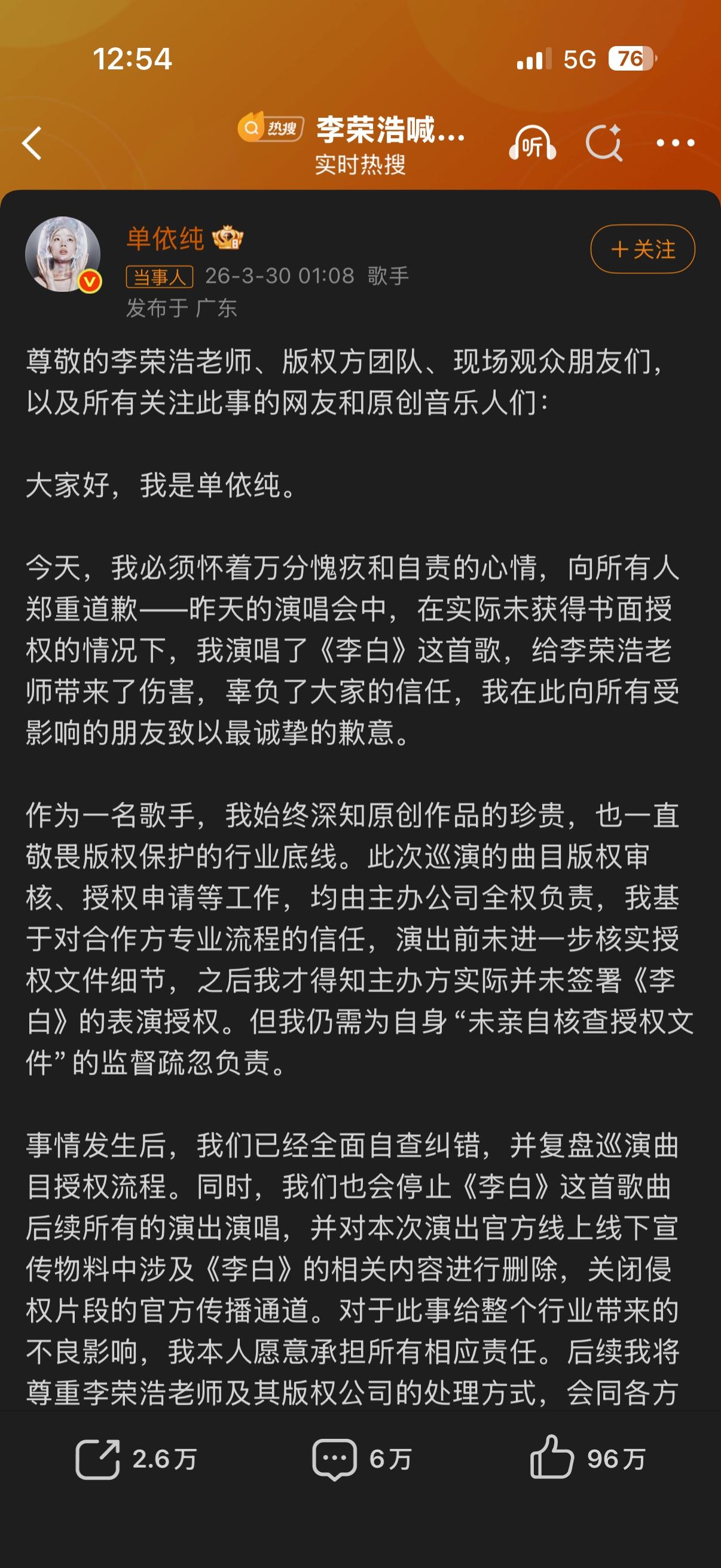 说句真心话,李白这歌火的时候我还不知道单依纯是谁[捂脸]单依纯改编版 单依纯改编版 李荣浩发文怒批单依纯侵权你怎么看