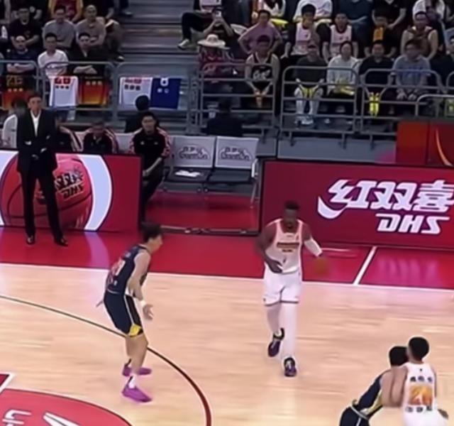 广东队把江苏新秀庞峥麟当外援防,徐杰胡明轩轮番包夹,阵仗挺大。结果人家硬是拿了2