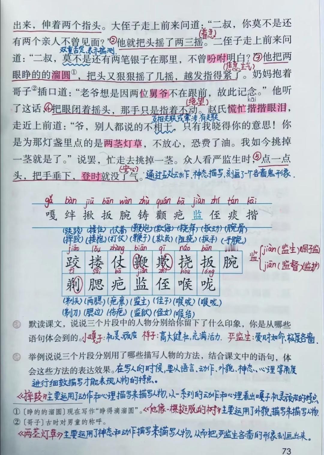 五年级下册语文,第五单元第13课《人物描写一组》课堂学习笔记,收藏预习复习