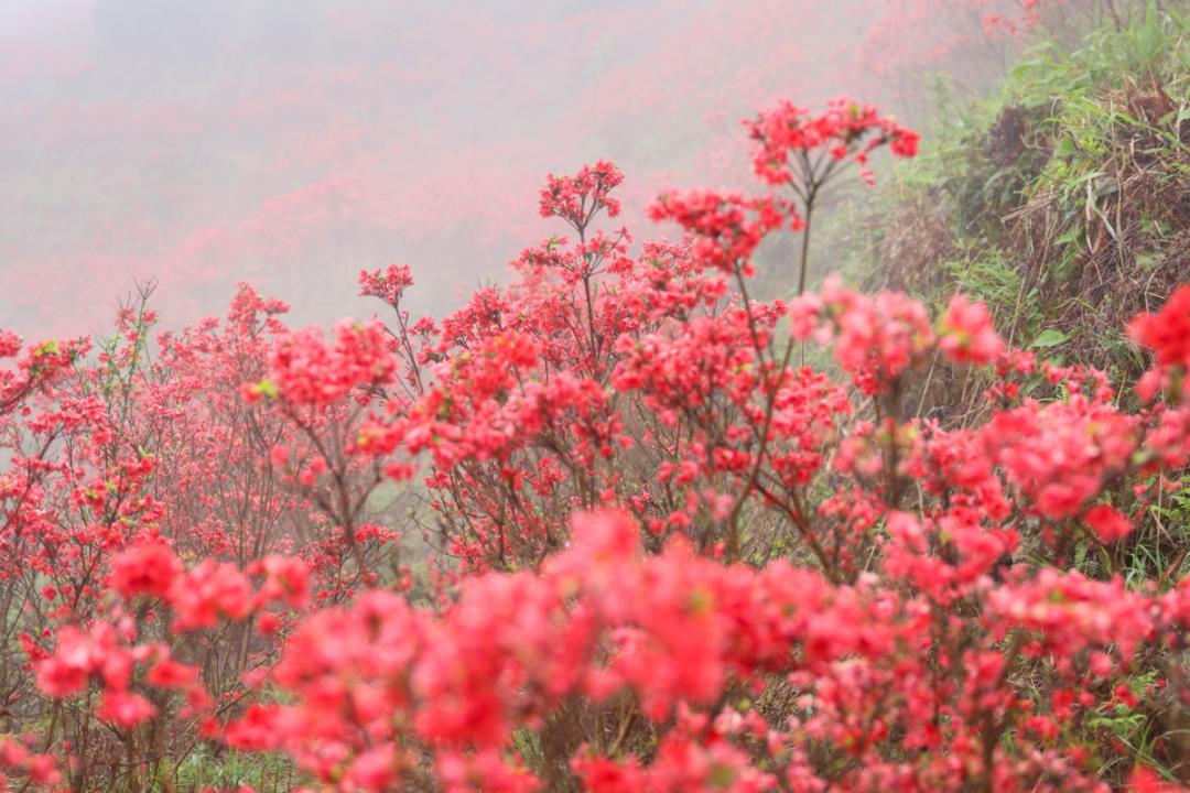 尽管天公不作美,雾笼罩山野,但漫山杜鹃在蒙蒙细雨中愈发娇艳欲滴,别有一番诗意。八方游客撑伞漫步花海,共赴这场烟雨中的“文明之约”。据初步统计,活动当天共迎来游客约2500人。