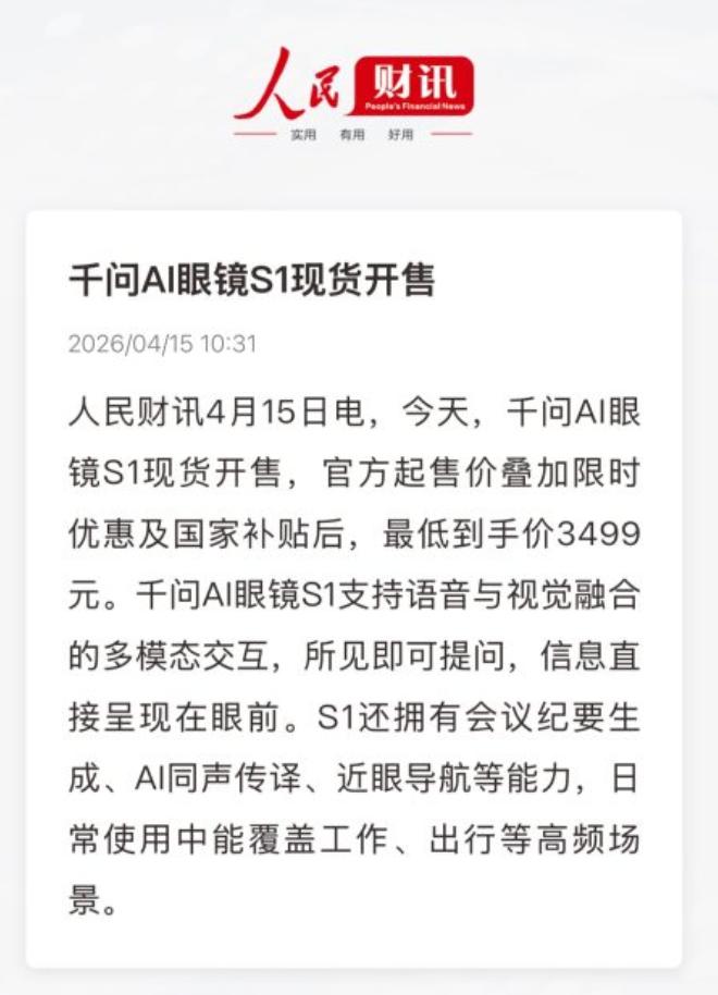当然,这么说是有根据的,在AI眼镜领域,像苹果、华为这些巨头巨头已经入场,而千问AI眼镜则更快人一步,千问旗舰AI眼镜S1开售最低到手价3499。而且这款AI眼镜最牛的地方就在于,已经从当初的可调用升级成了24小时在线了。