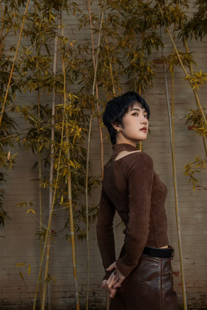 姚安娜黑色皮衣机车造型姚安娜片场太有反差感了 姚安娜这身黑色机车皮衣造型真的可以