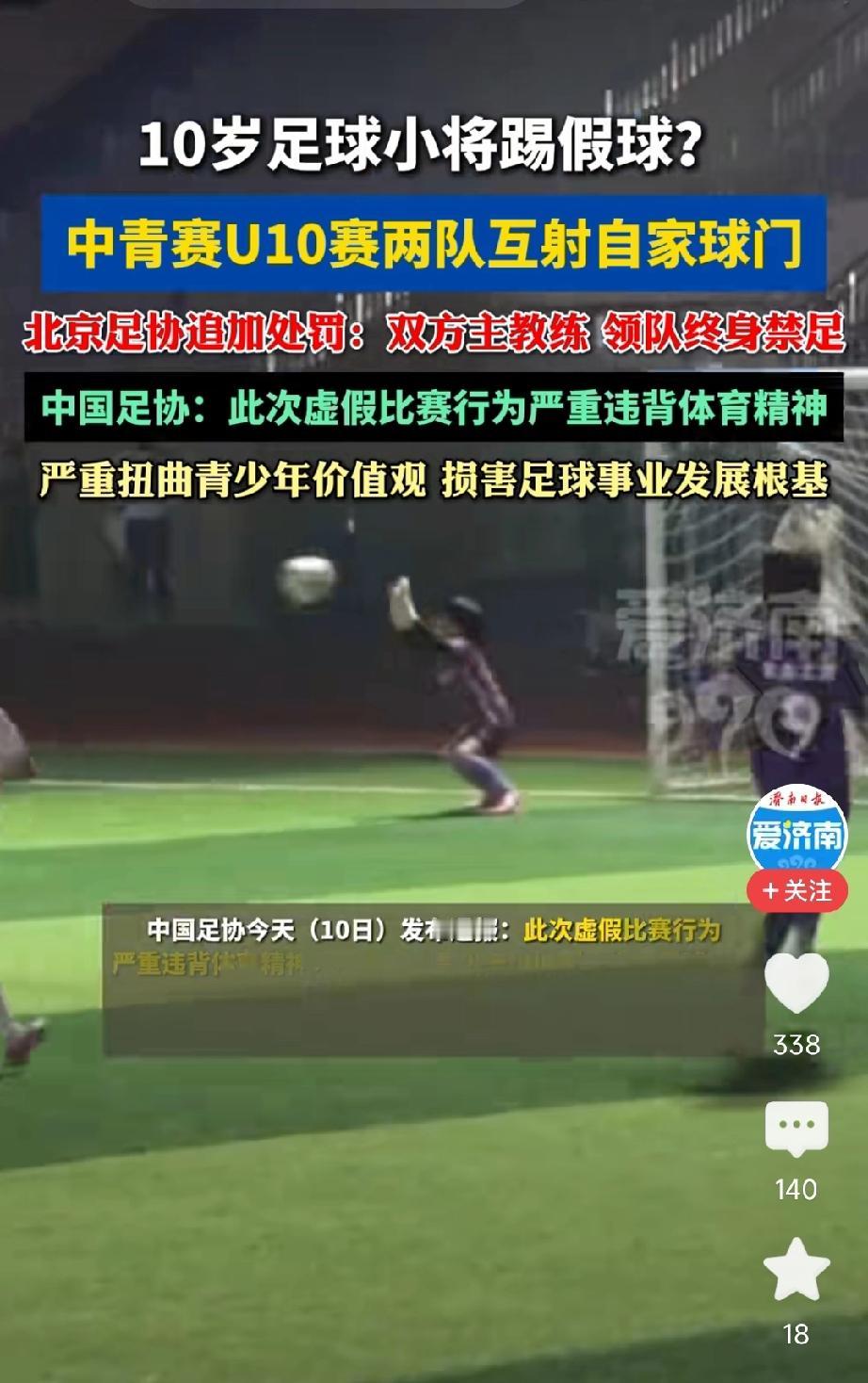 近日,在第五届中国青少年足球联赛(中青赛)北京赛区男子U10组小组赛中,发生了令人痛心疾首的丑闻,堪称是国内青少年足球史上最恶劣假球事件之一。