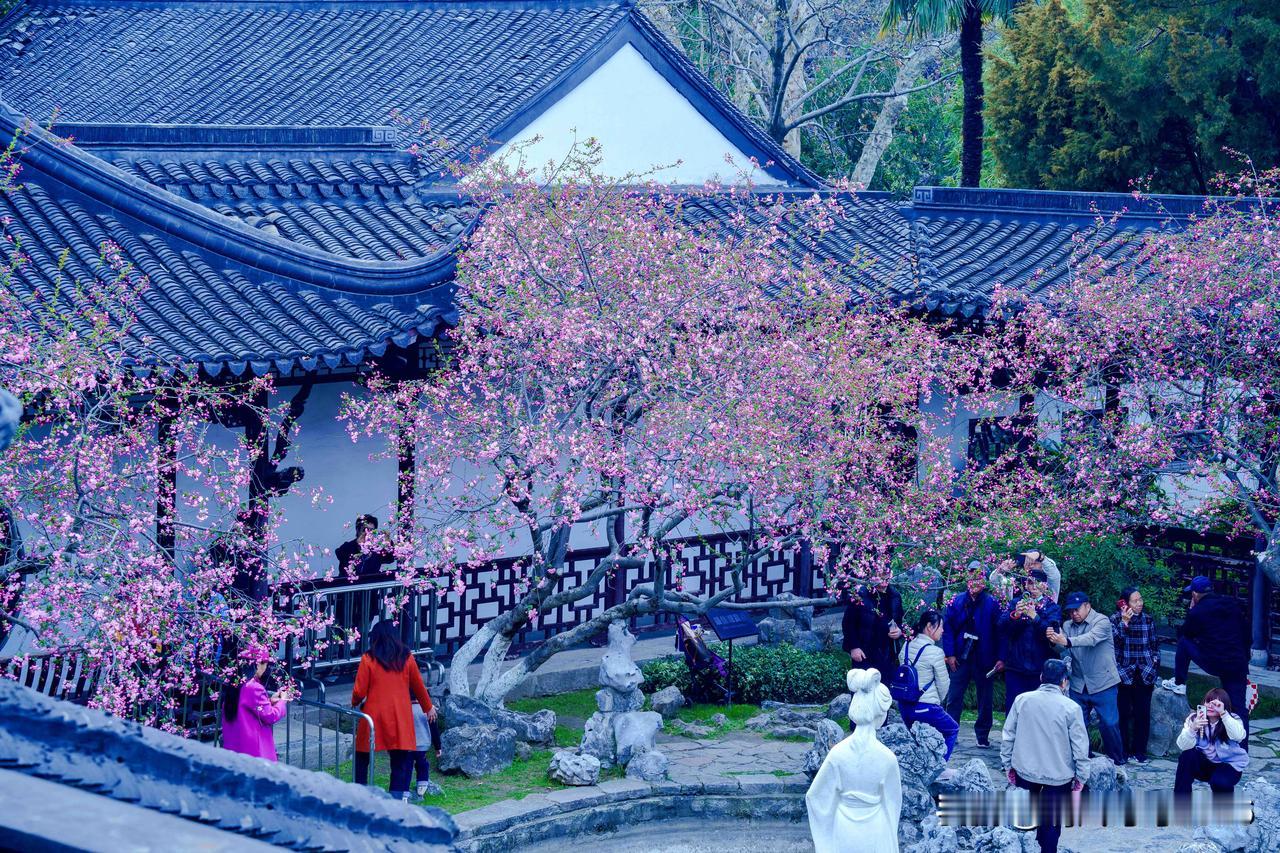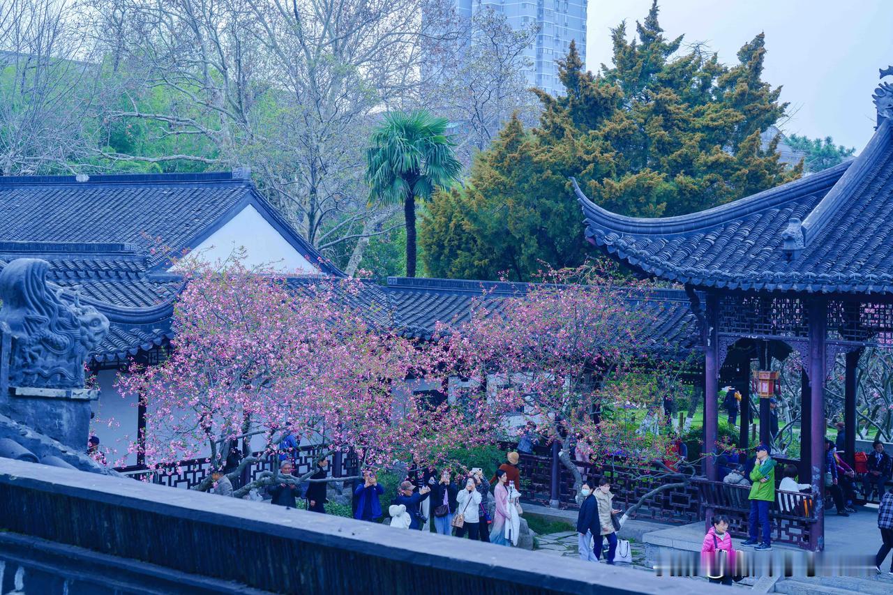 金陵春深,意趣万千。莫愁湖的春,藏于水院的花窗与亭影之间。