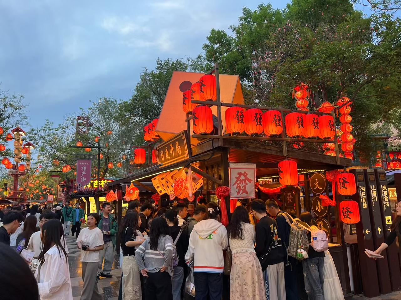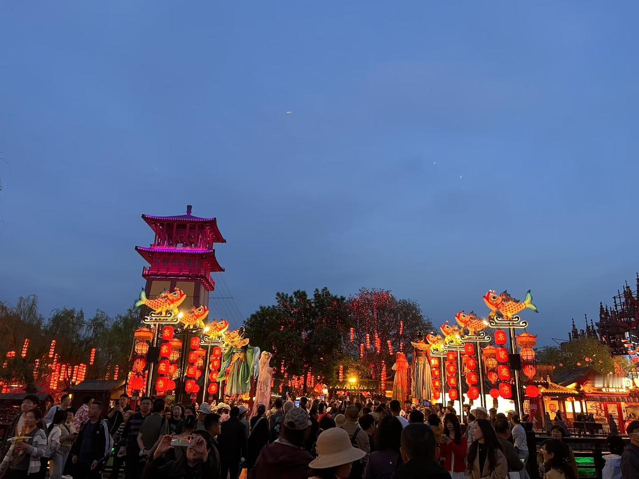 刚入园就赶上“王员外招亲”,那姑娘抛绣球,我差点被砸中,周围单身汉都疯抢。白天园内巡游热闹非凡,演员扮成宋朝人到处互动,小孩玩得超开心,还有射箭等小游戏。