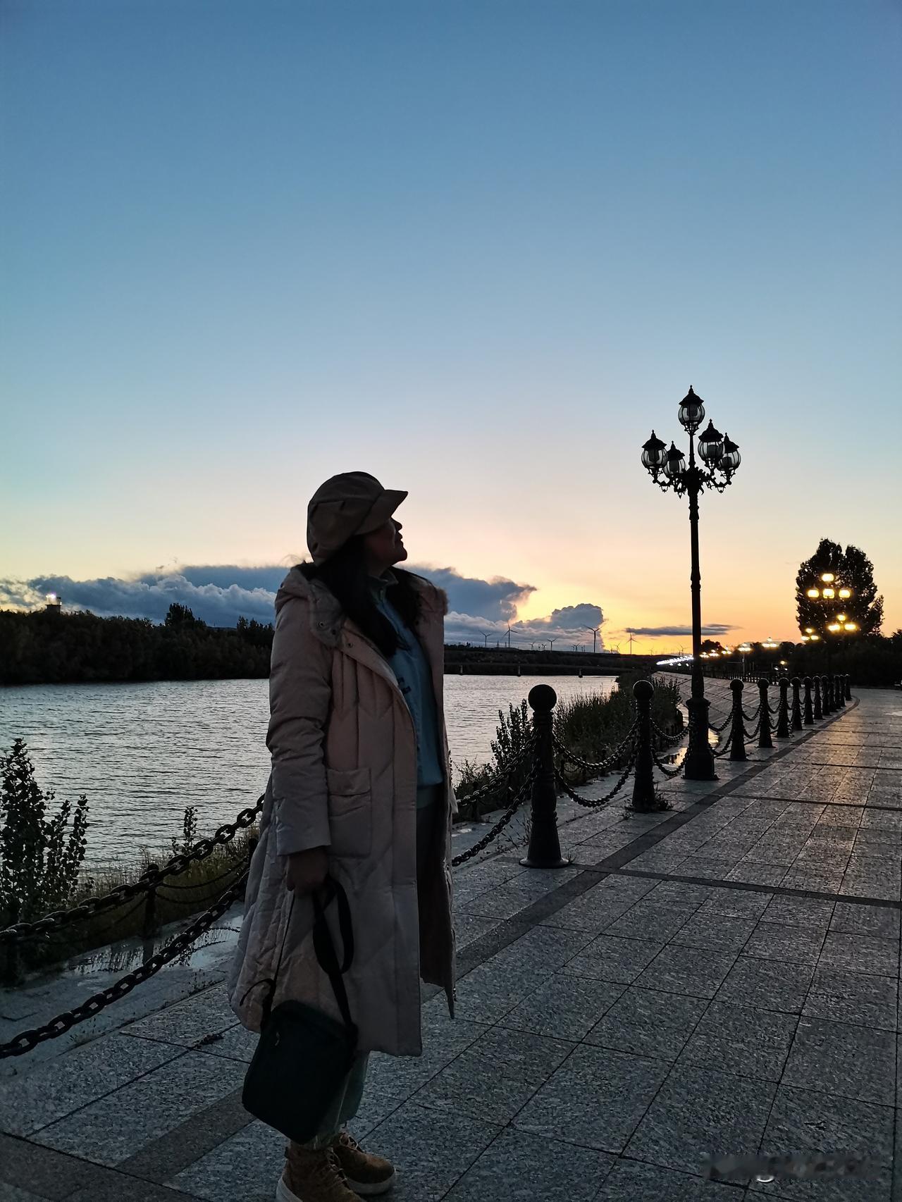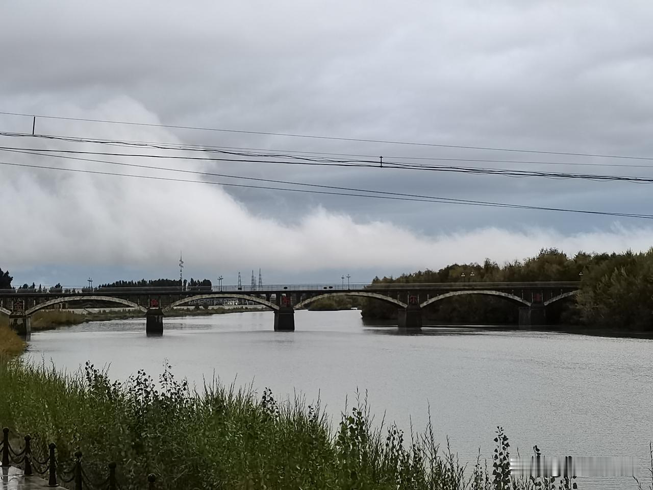 额尔齐斯河的水纯净平静缓缓流淌,不远处的吊桥让你觉得亲切和浪漫。