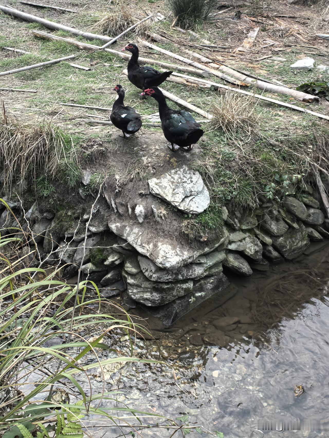 有鸡鸣,有狗叫,有鹅和鸭在水中游。